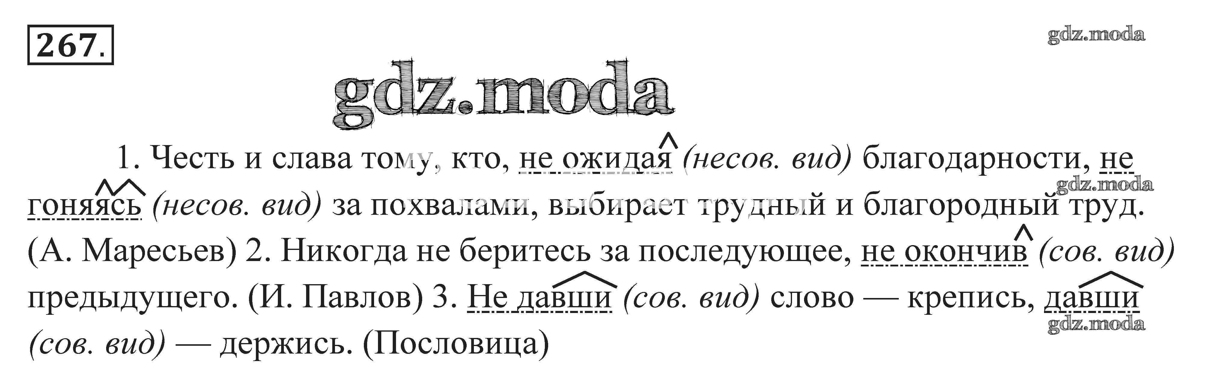 ГДЗ решение к заданию № 267 Русский язык. Практика 7 класс Пименова С.Н. Дрофа 2016 ФГОС бесплатно на гдз.мода!