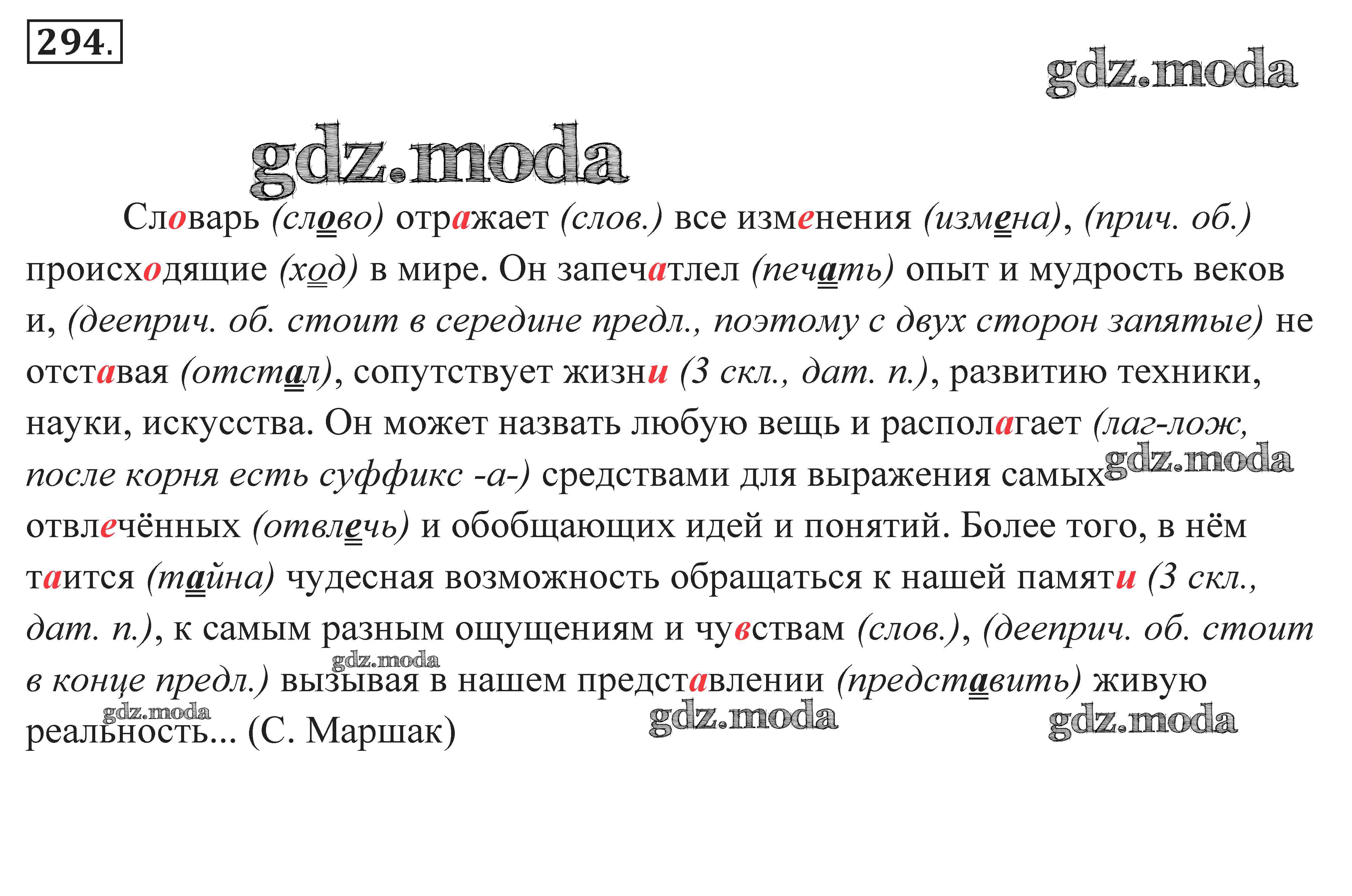ОТВЕТ на задание № 294 Практика по Русскому языку 7 класс Пименова