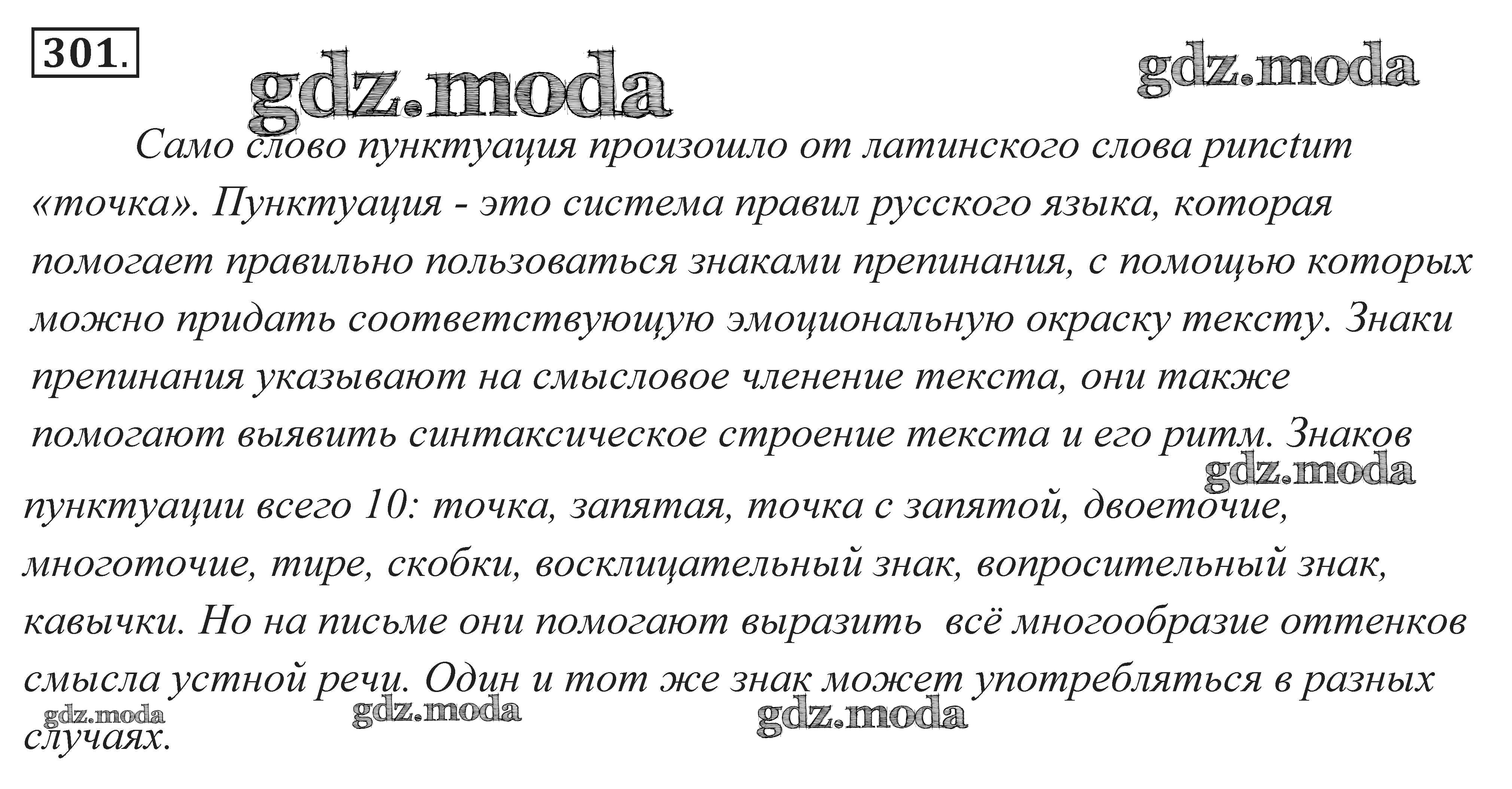 ОТВЕТ на задание № 301 Практика по Русскому языку 7 класс Пименова