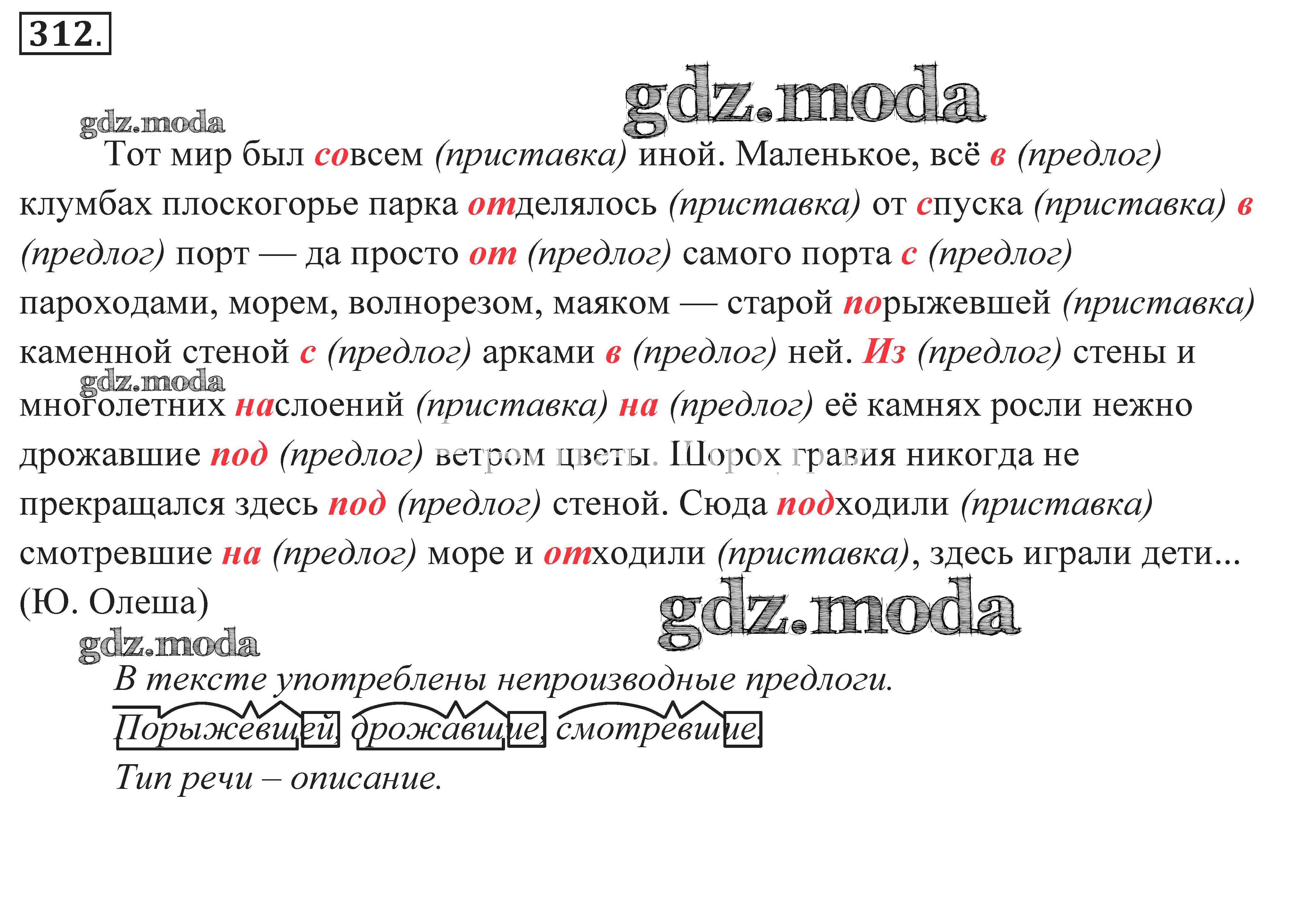ОТВЕТ на задание № 312 Практика по Русскому языку 7 класс Пименова
