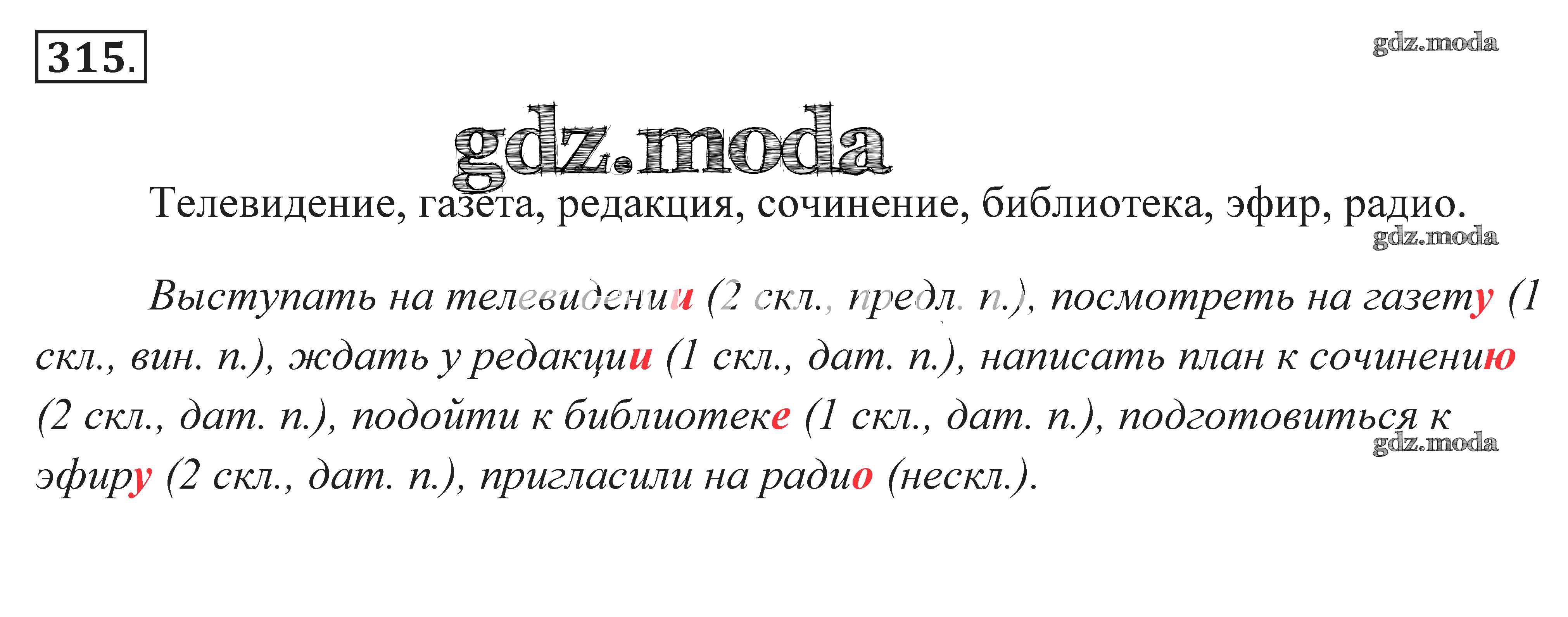 ОТВЕТ на задание № 315 Практика по Русскому языку 7 класс Пименова