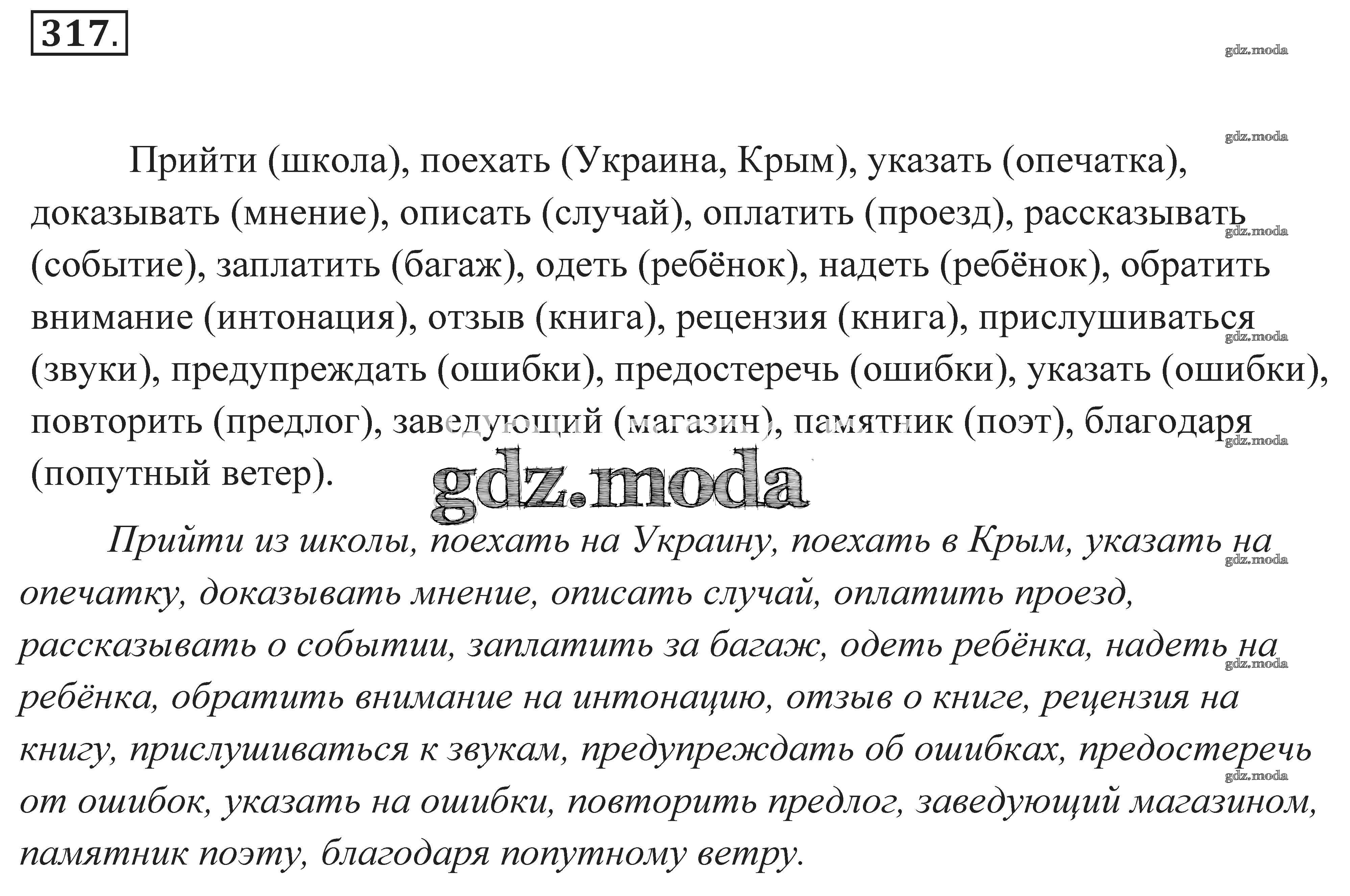 ОТВЕТ на задание № 317 Практика по Русскому языку 7 класс Пименова