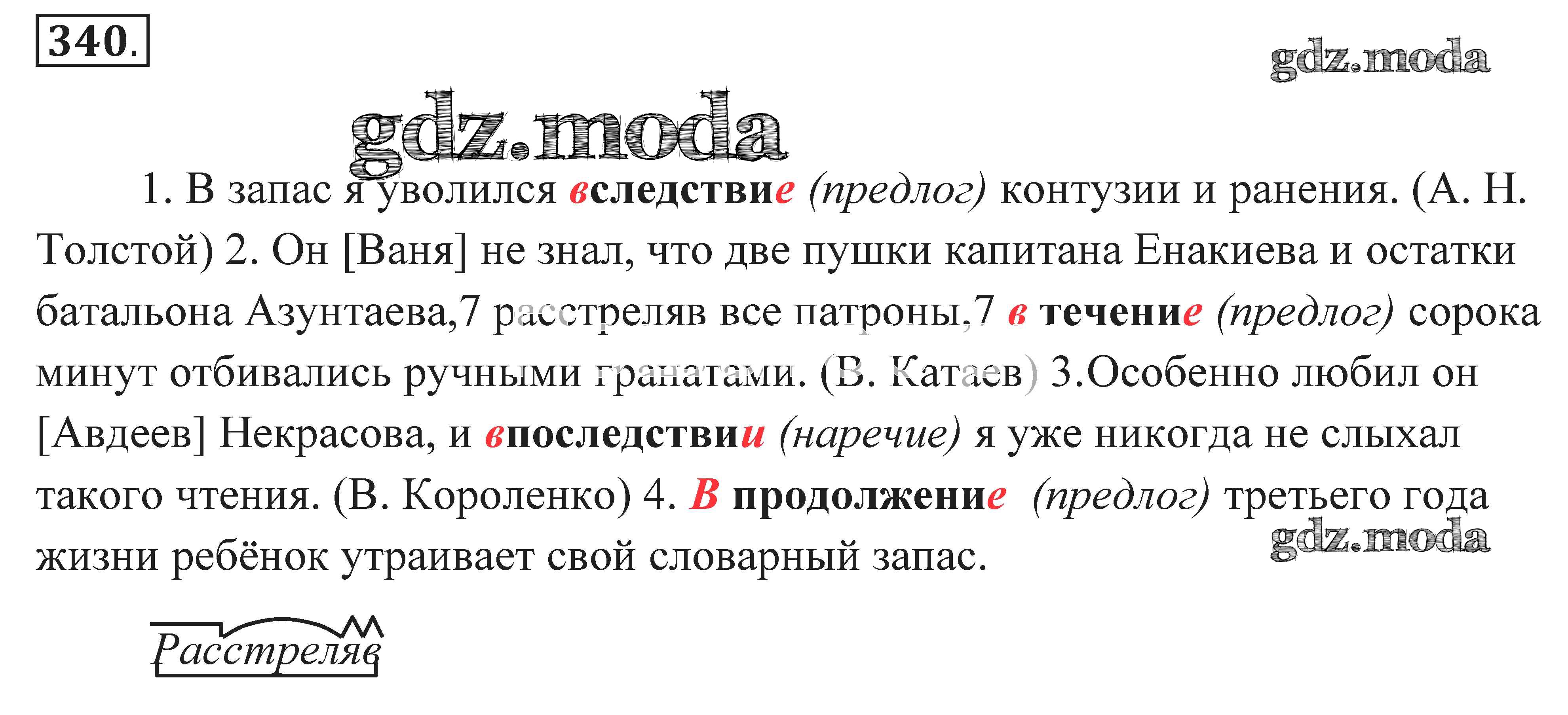 ОТВЕТ на задание № 340 Практика по Русскому языку 7 класс Пименова