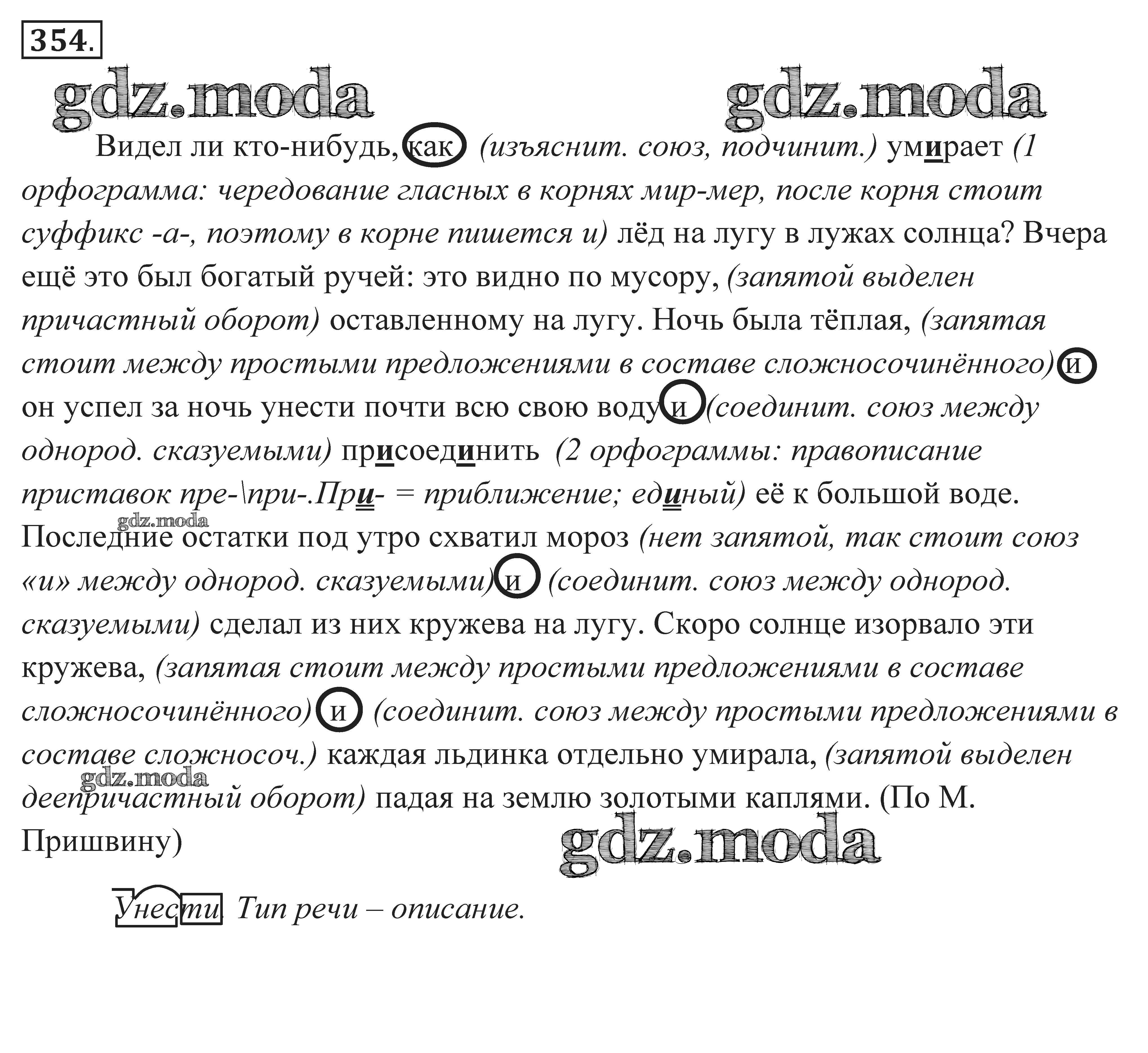 ГДЗ решение к заданию № 354 Русский язык. Практика 7 класс Пименова С.Н. Дрофа 2016 ФГОС бесплатно на гдз.мода!