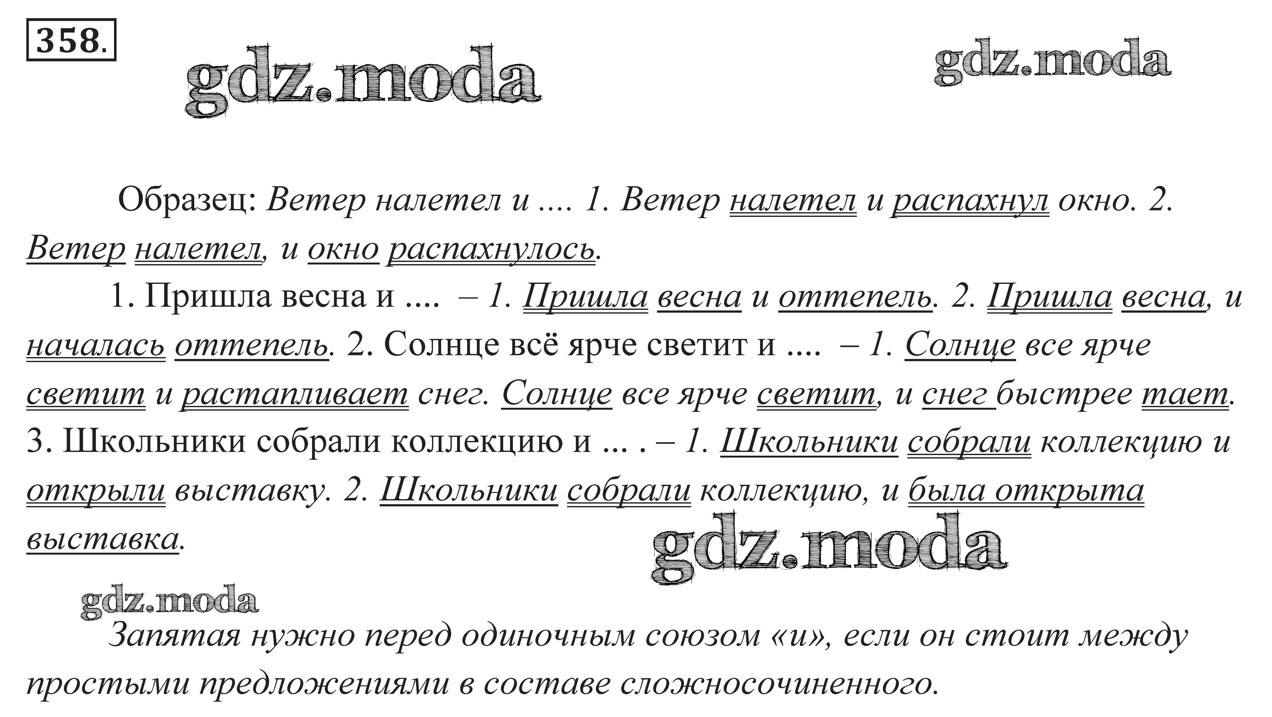 ОТВЕТ на задание № 358 Практика по Русскому языку 7 класс Пименова