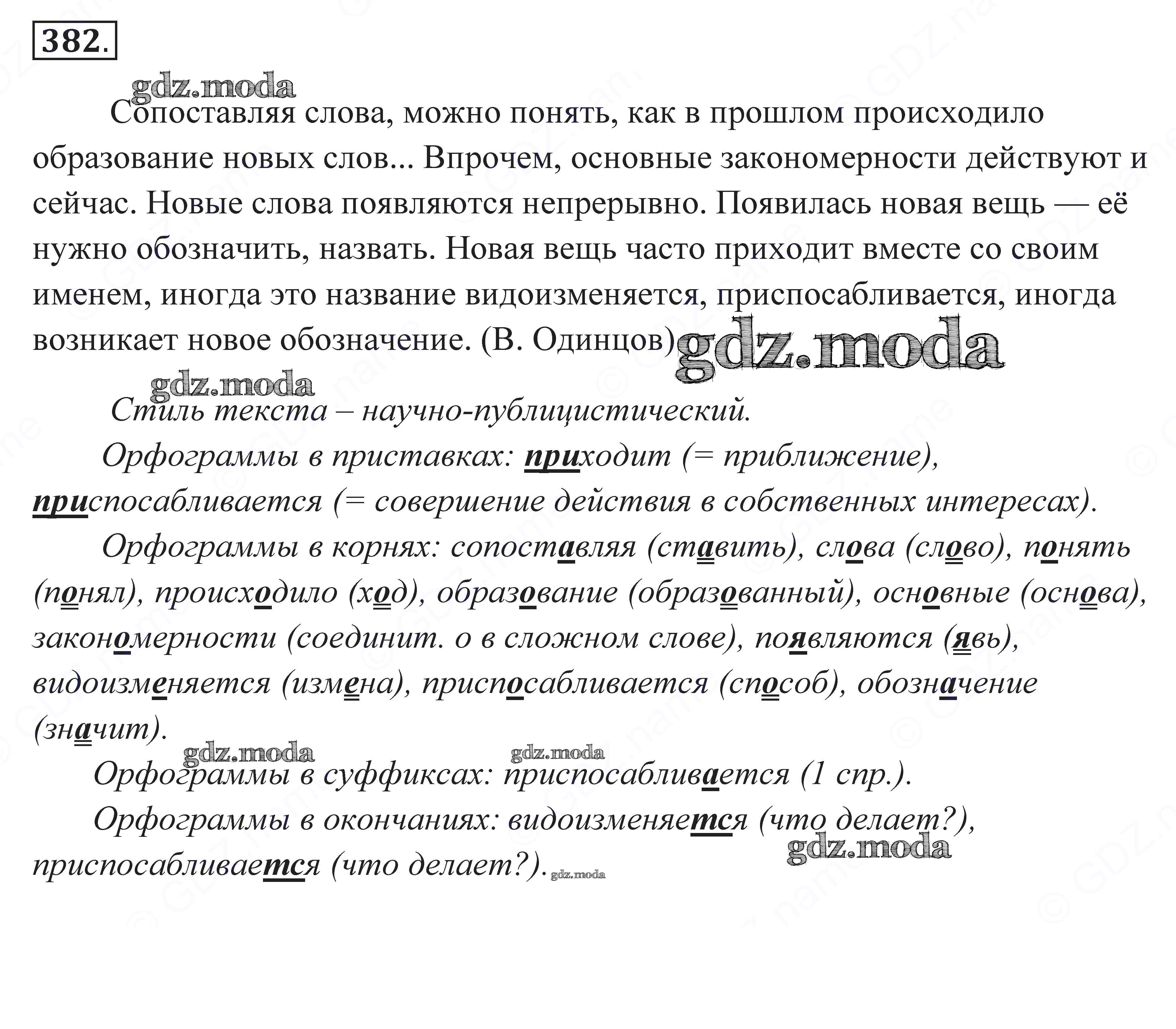 ОТВЕТ на задание № 382 Практика по Русскому языку 7 класс Пименова