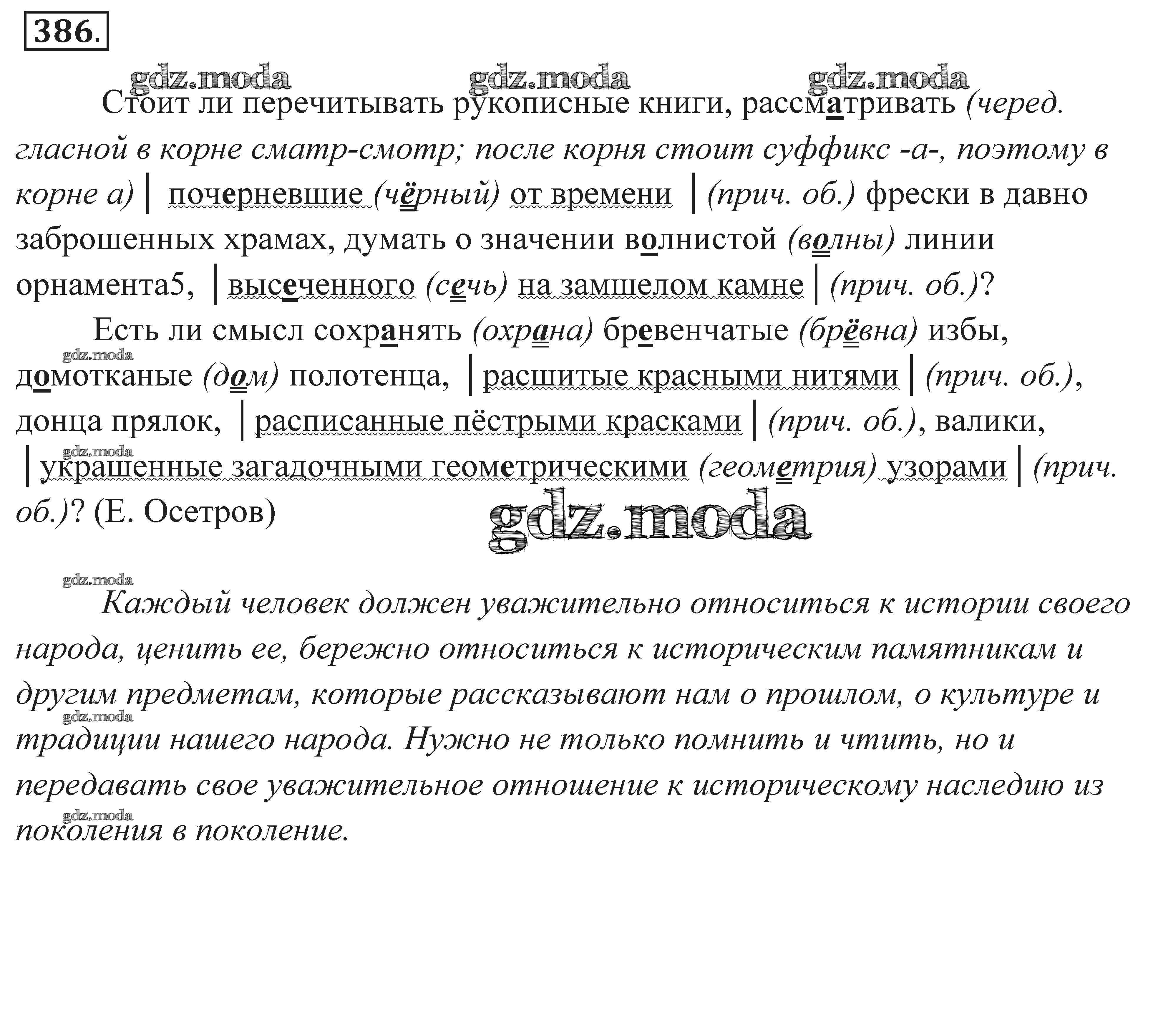 ГДЗ решение к заданию № 386 Русский язык. Практика 7 класс Пименова С.Н. Дрофа 2016 ФГОС бесплатно на гдз.мода!