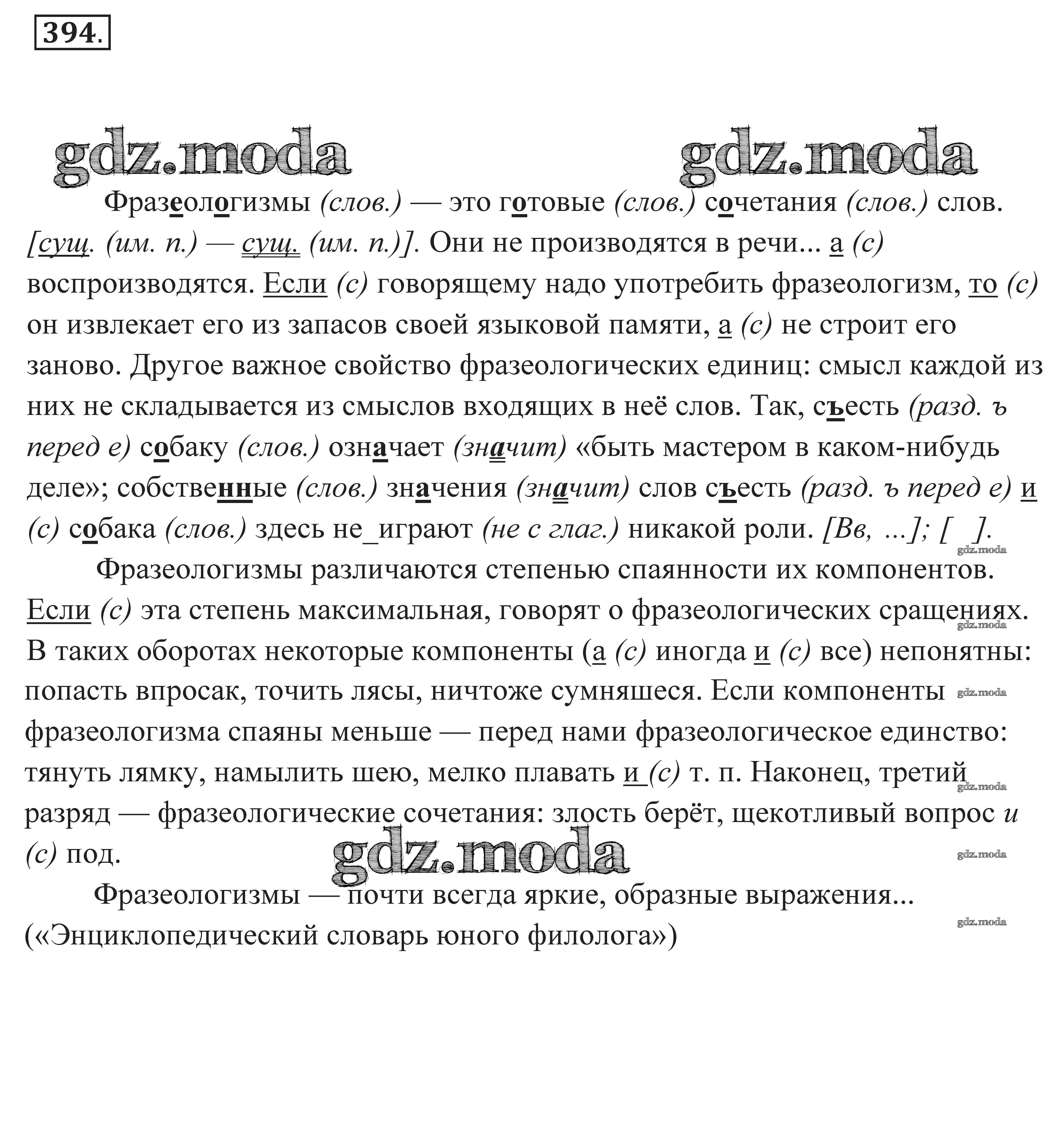 ОТВЕТ на задание № 394 Практика по Русскому языку 7 класс Пименова