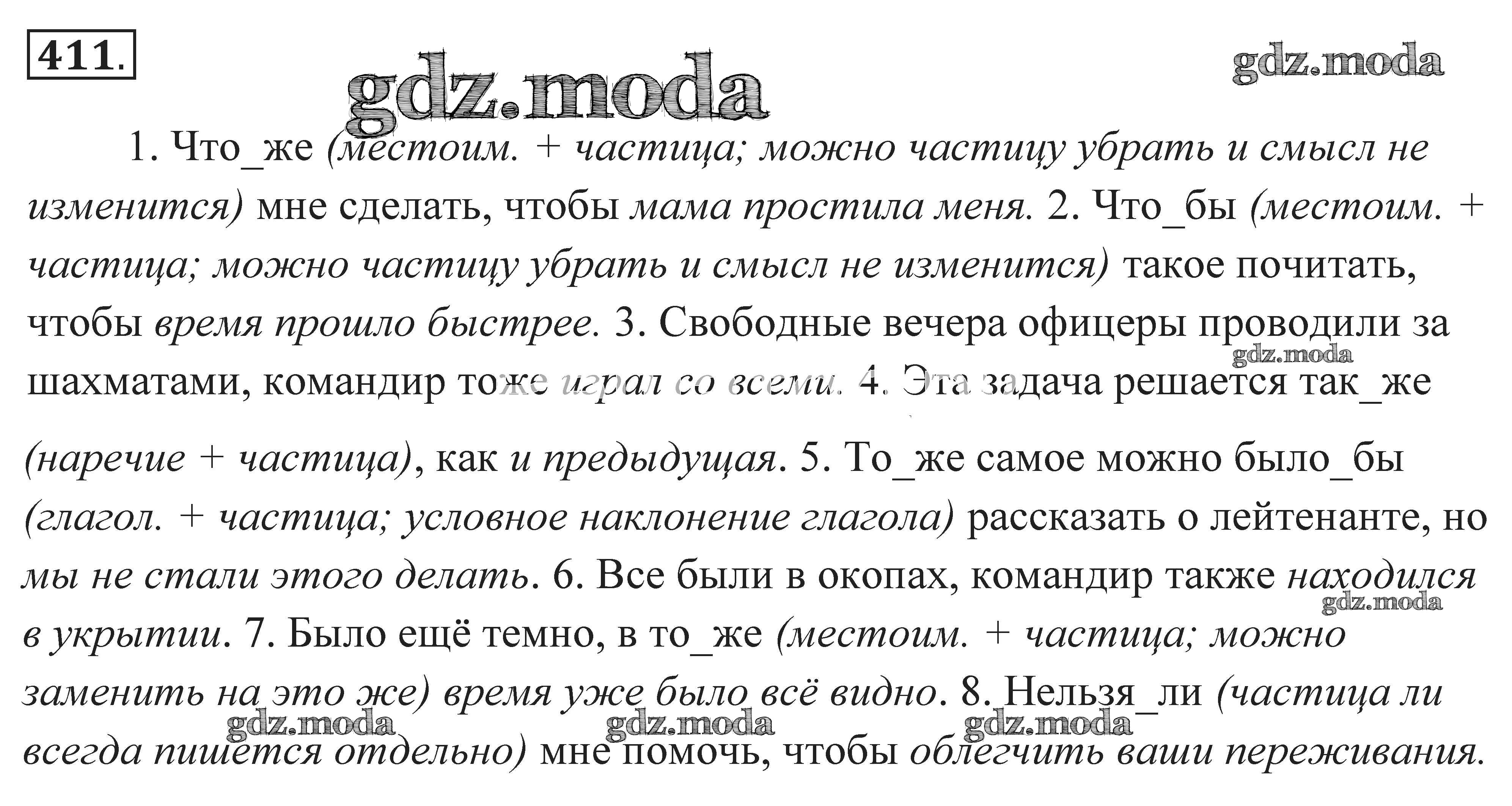 ОТВЕТ на задание № 411 Практика по Русскому языку 7 класс Пименова