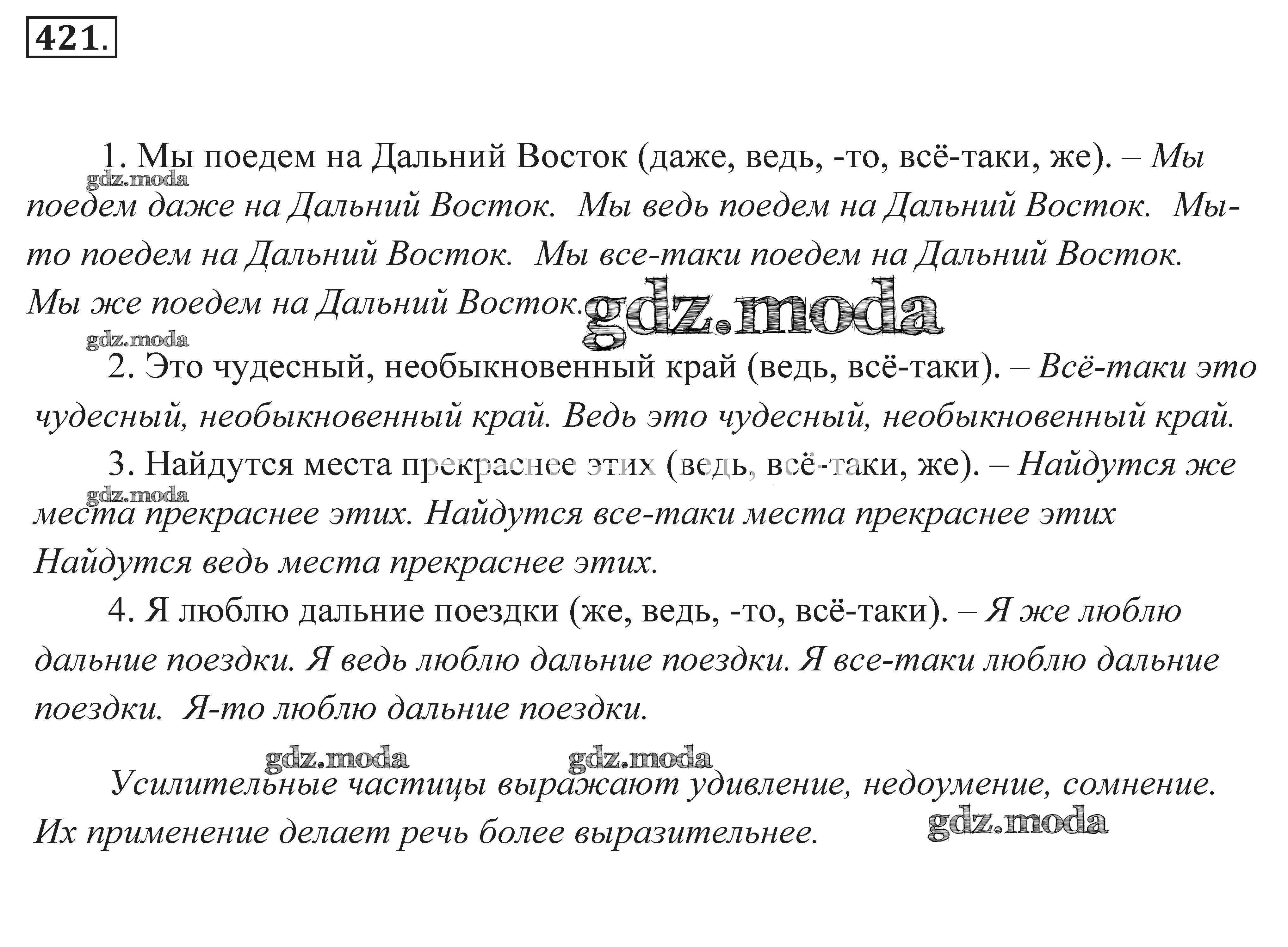 ГДЗ решение к заданию № 421 Русский язык. Практика 7 класс Пименова С.Н. Дрофа 2016 ФГОС бесплатно на гдз.мода!