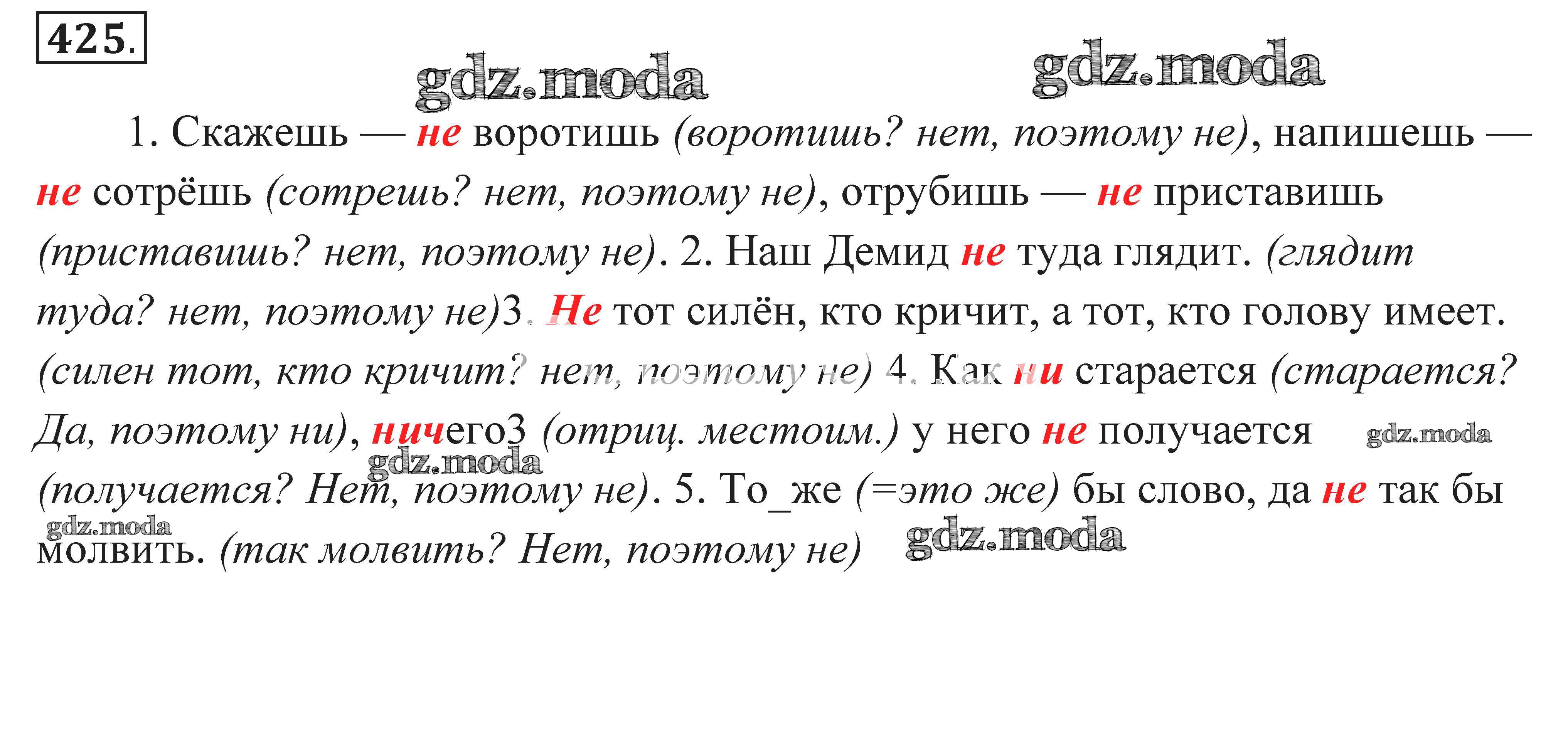 ОТВЕТ на задание № 425 Практика по Русскому языку 7 класс Пименова
