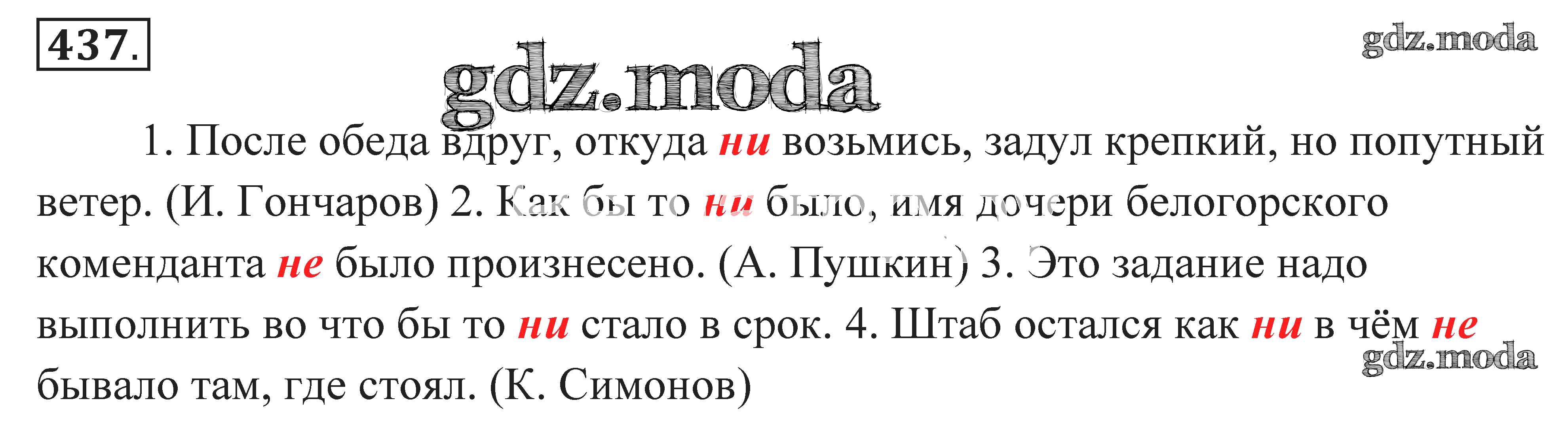 ГДЗ решение к заданию № 437 Русский язык. Практика 7 класс Пименова С.Н. Дрофа 2016 ФГОС бесплатно на гдз.мода!