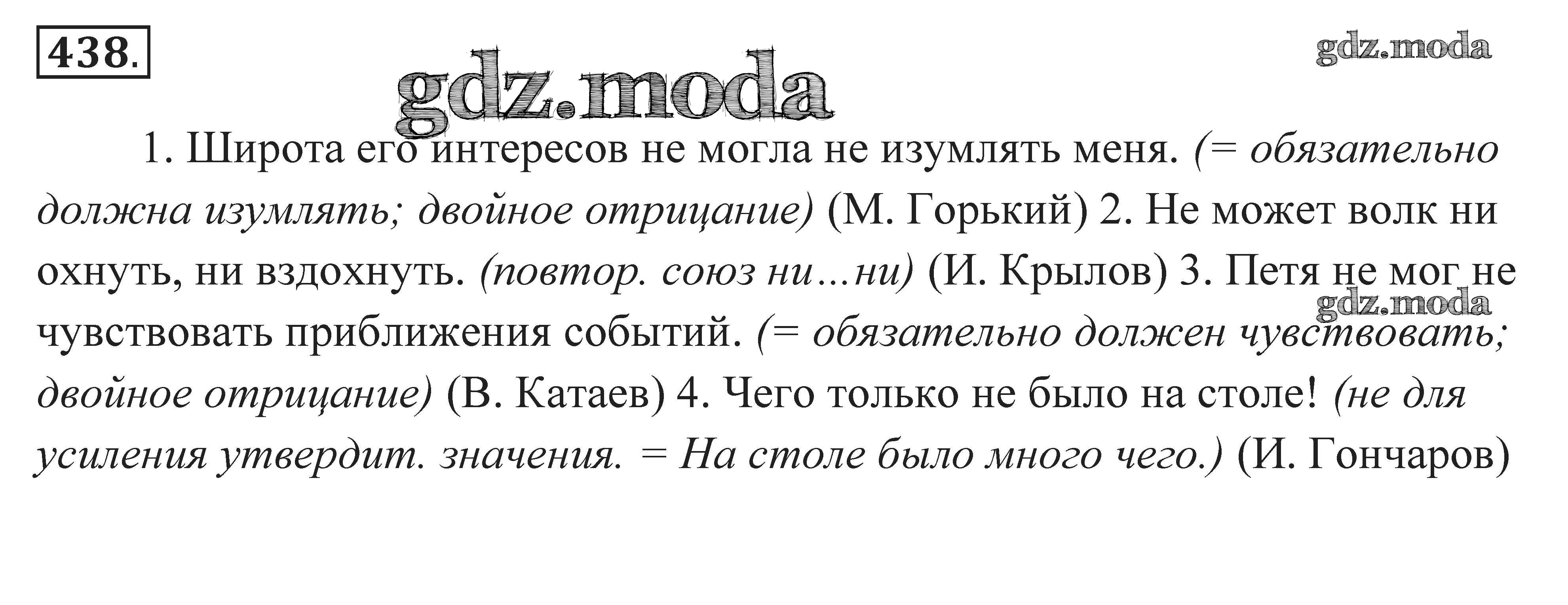 ГДЗ решение к заданию № 438 Русский язык. Практика 7 класс Пименова С.Н. Дрофа 2016 ФГОС бесплатно на гдз.мода!