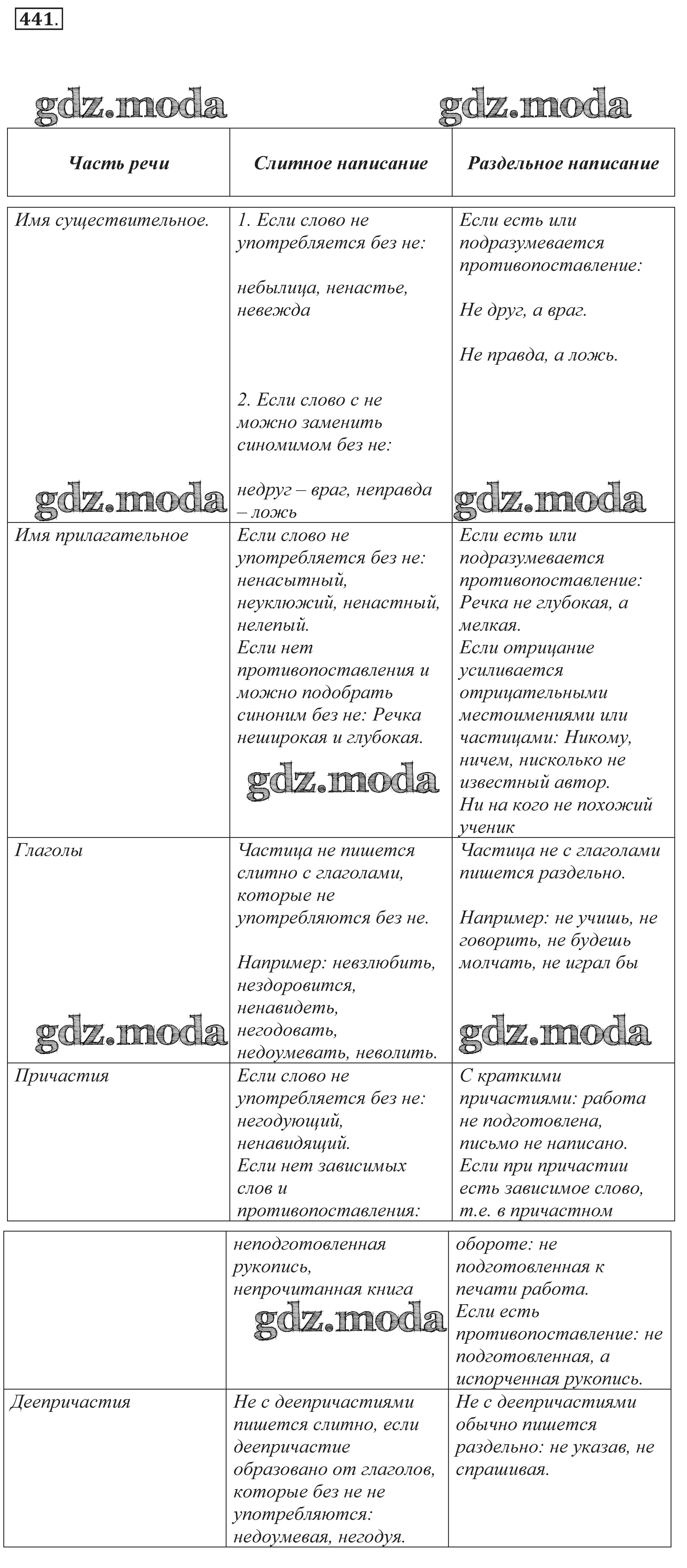 ГДЗ решение к заданию № 441 Русский язык. Практика 7 класс Пименова С.Н. Дрофа 2016 ФГОС бесплатно на гдз.мода!