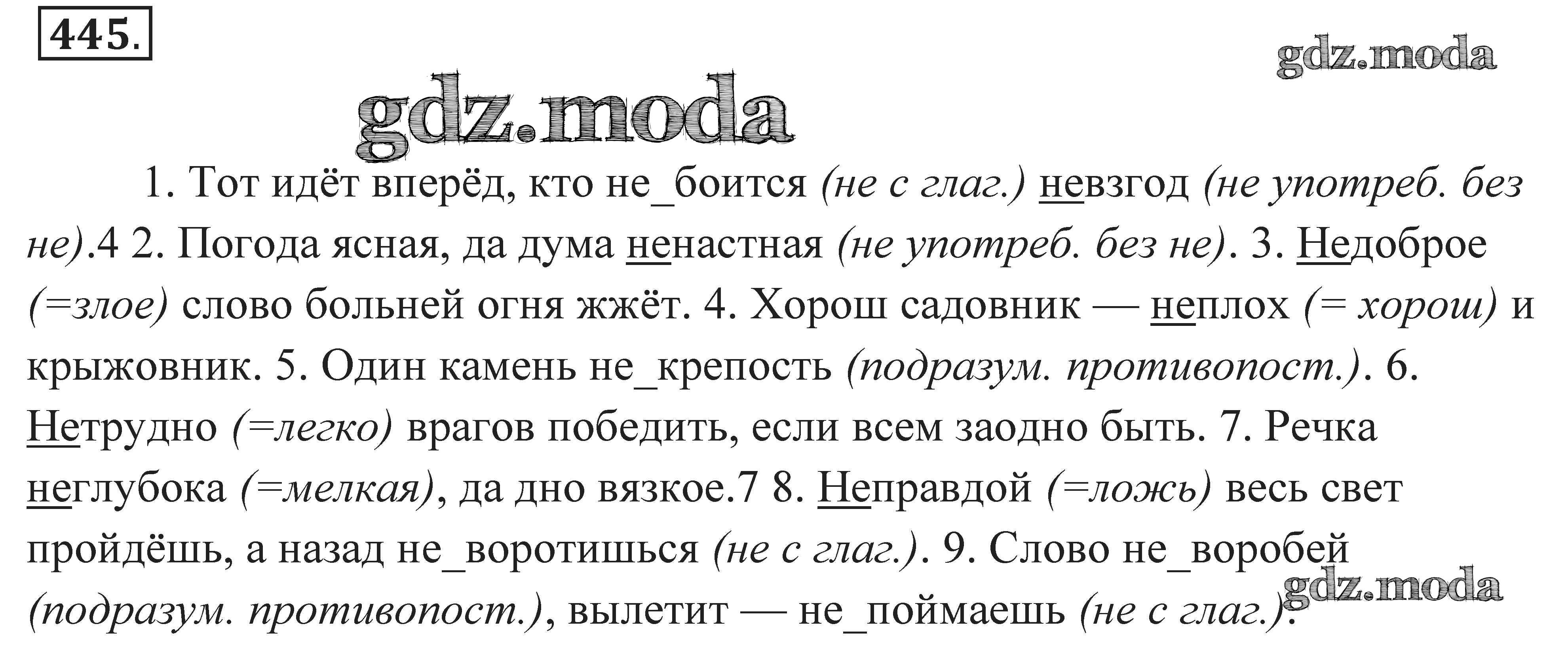 ГДЗ решение к заданию № 445 Русский язык. Практика 7 класс Пименова С.Н. Дрофа 2016 ФГОС бесплатно на гдз.мода!