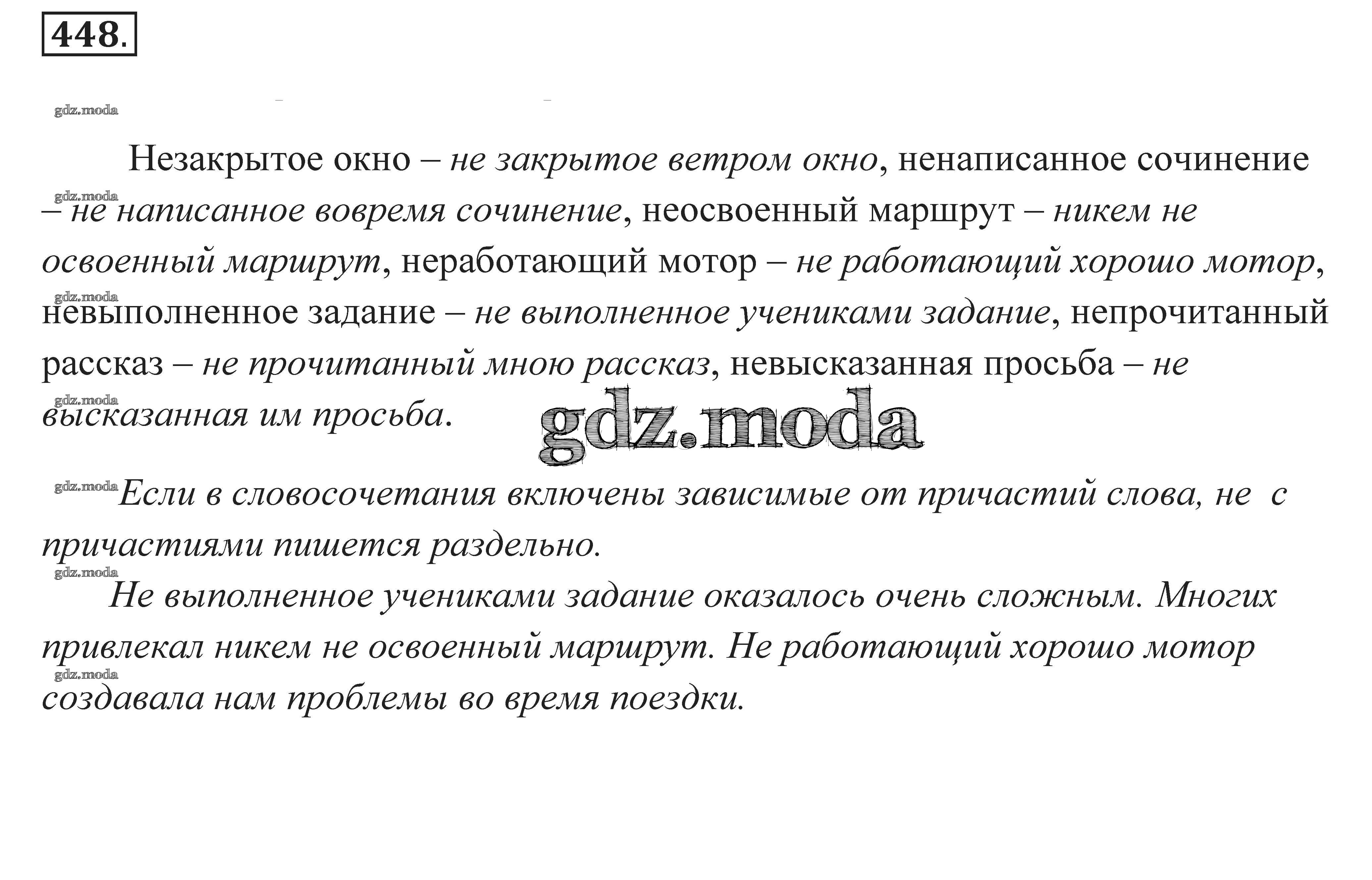 ГДЗ решение к заданию № 448 Русский язык. Практика 7 класс Пименова С.Н. Дрофа 2016 ФГОС бесплатно на гдз.мода!