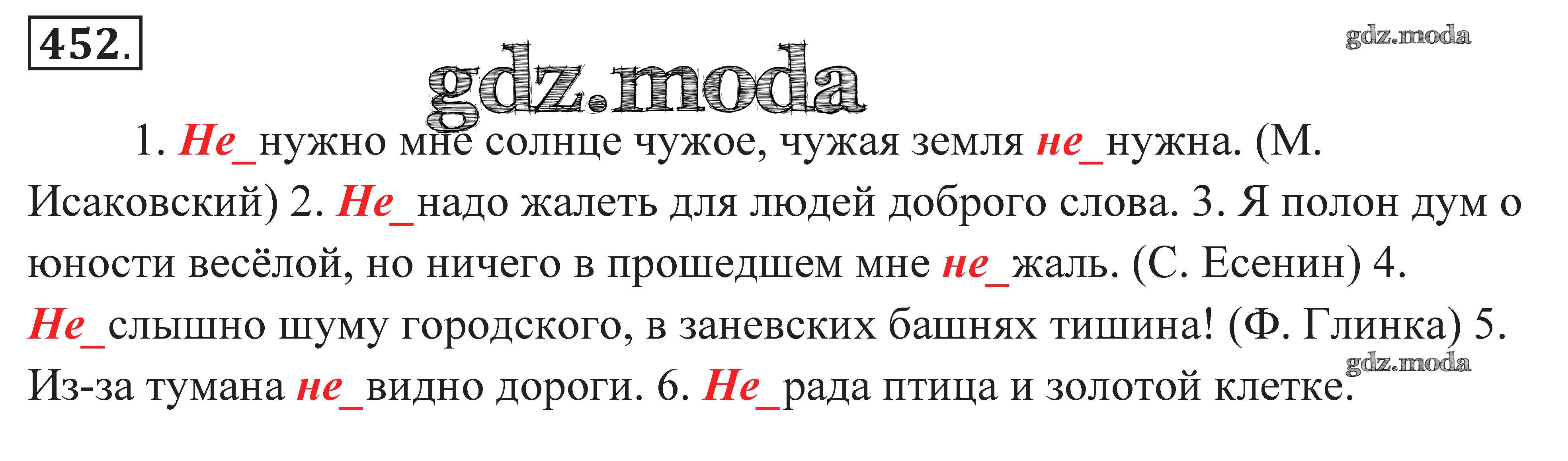 ГДЗ решение к заданию № 452 Русский язык. Практика 7 класс Пименова С.Н. Дрофа 2016 ФГОС бесплатно на гдз.мода!