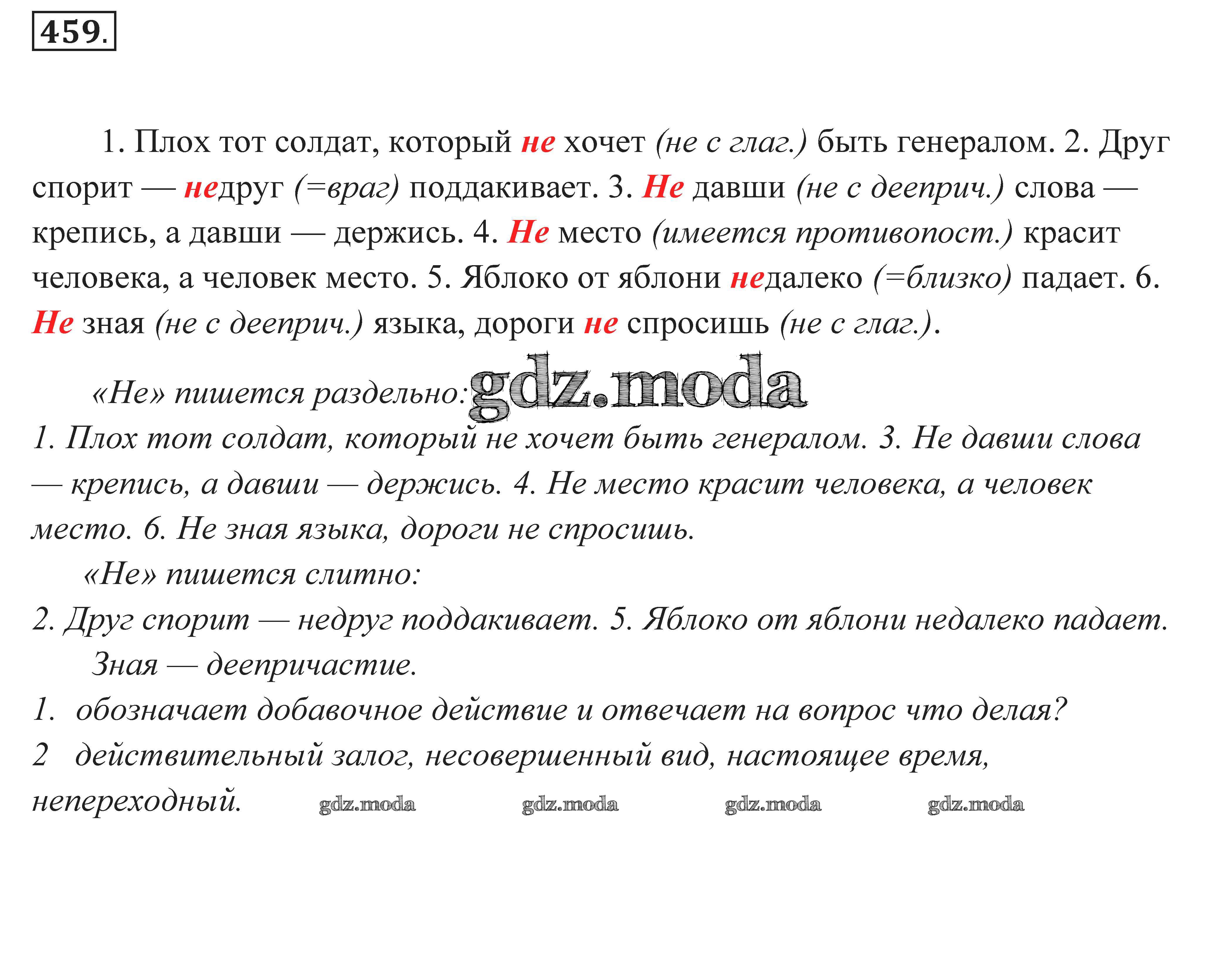 ГДЗ решение к заданию № 459 Русский язык. Практика 7 класс Пименова С.Н. Дрофа 2016 ФГОС бесплатно на гдз.мода!