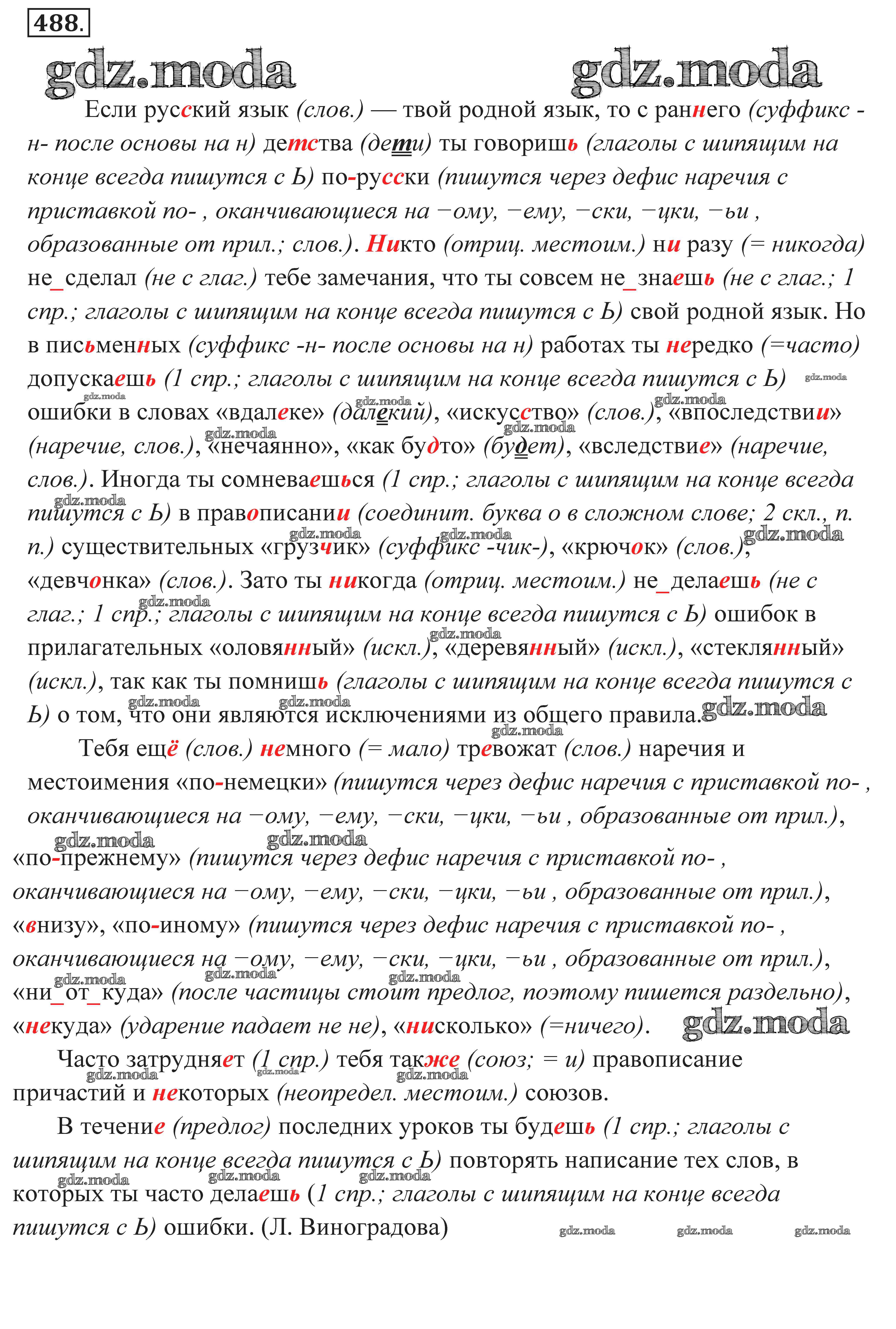 ГДЗ решение к заданию № 488 Русский язык. Практика 7 класс Пименова С.Н. Дрофа 2016 ФГОС бесплатно на гдз.мода!