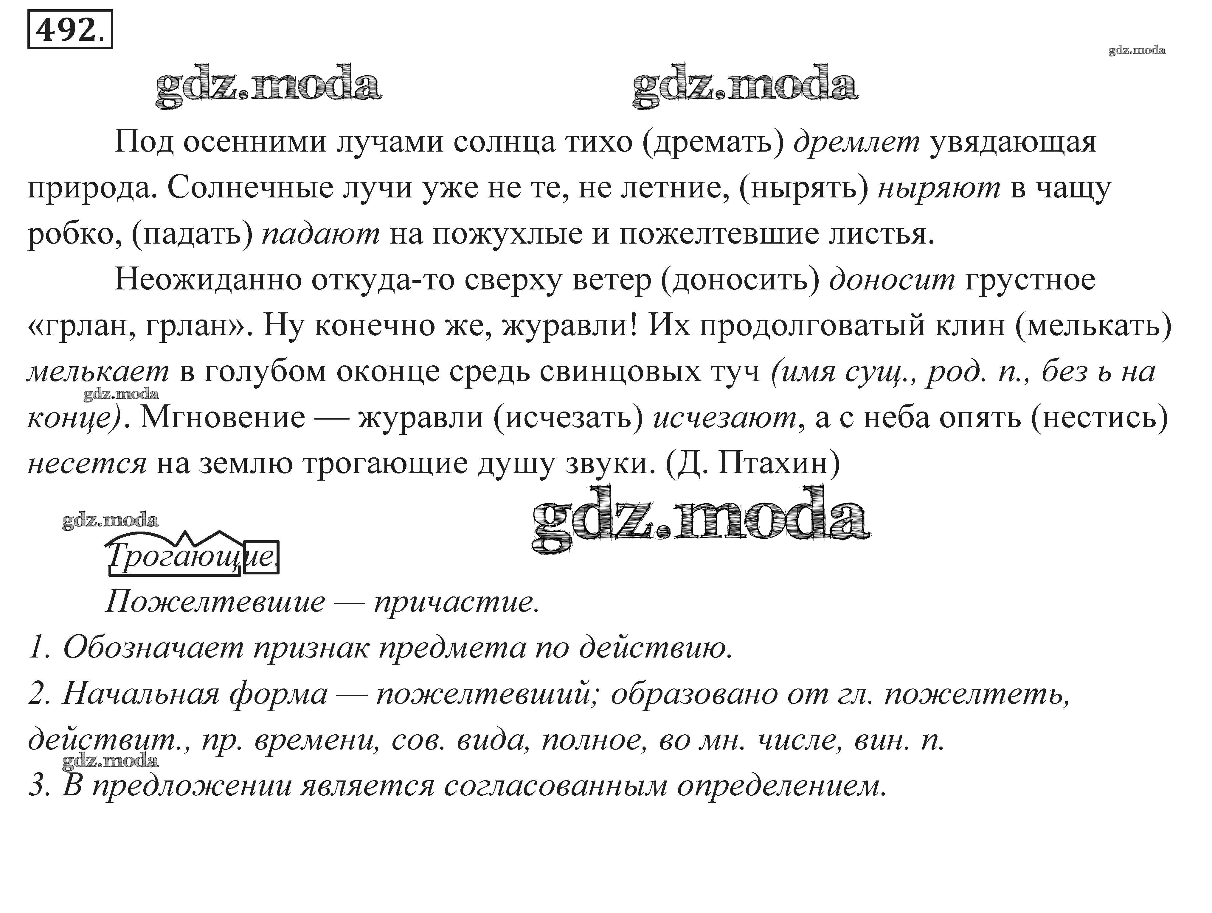 ГДЗ решение к заданию № 492 Русский язык. Практика 7 класс Пименова С.Н. Дрофа 2016 ФГОС бесплатно на гдз.мода!