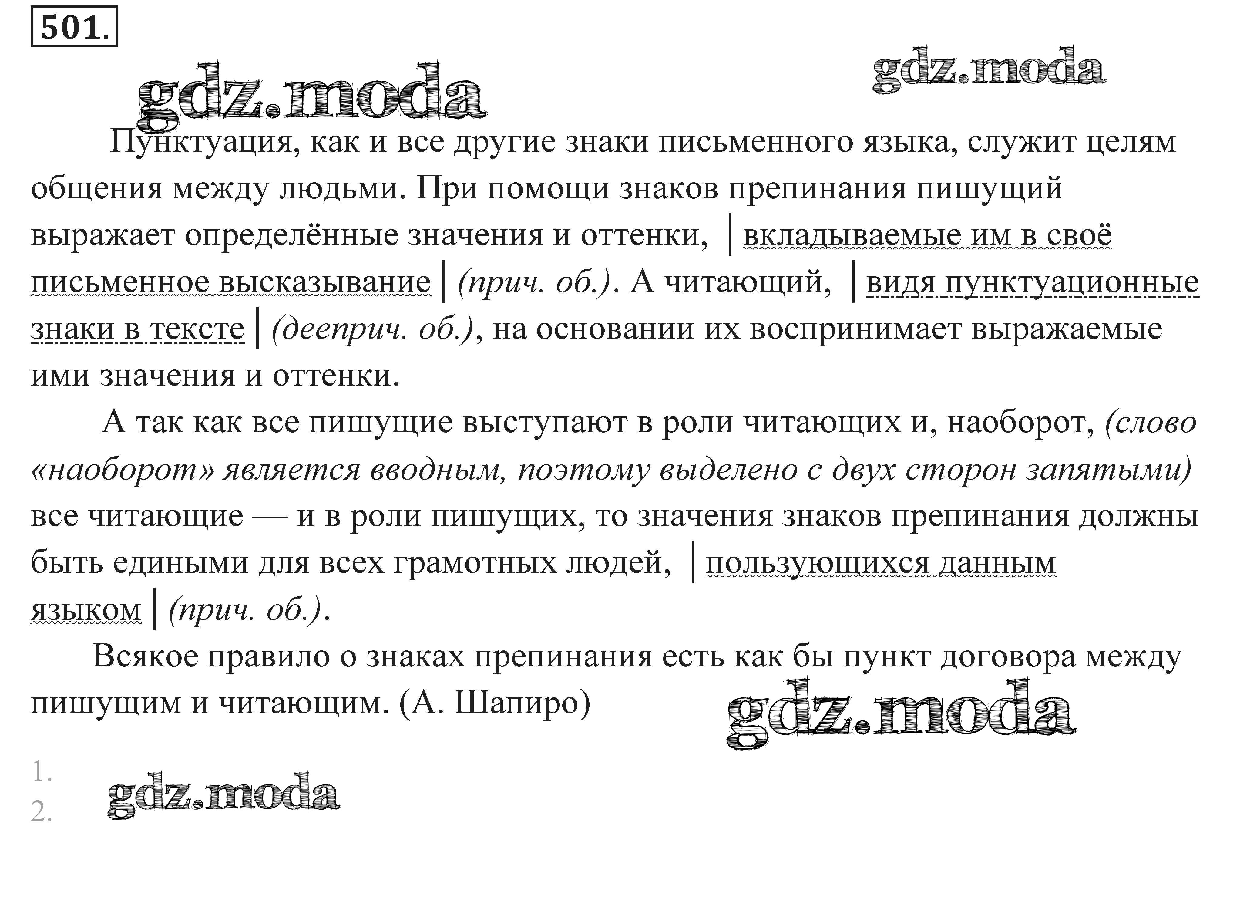 ОТВЕТ на задание № 501 Практика по Русскому языку 7 класс Пименова