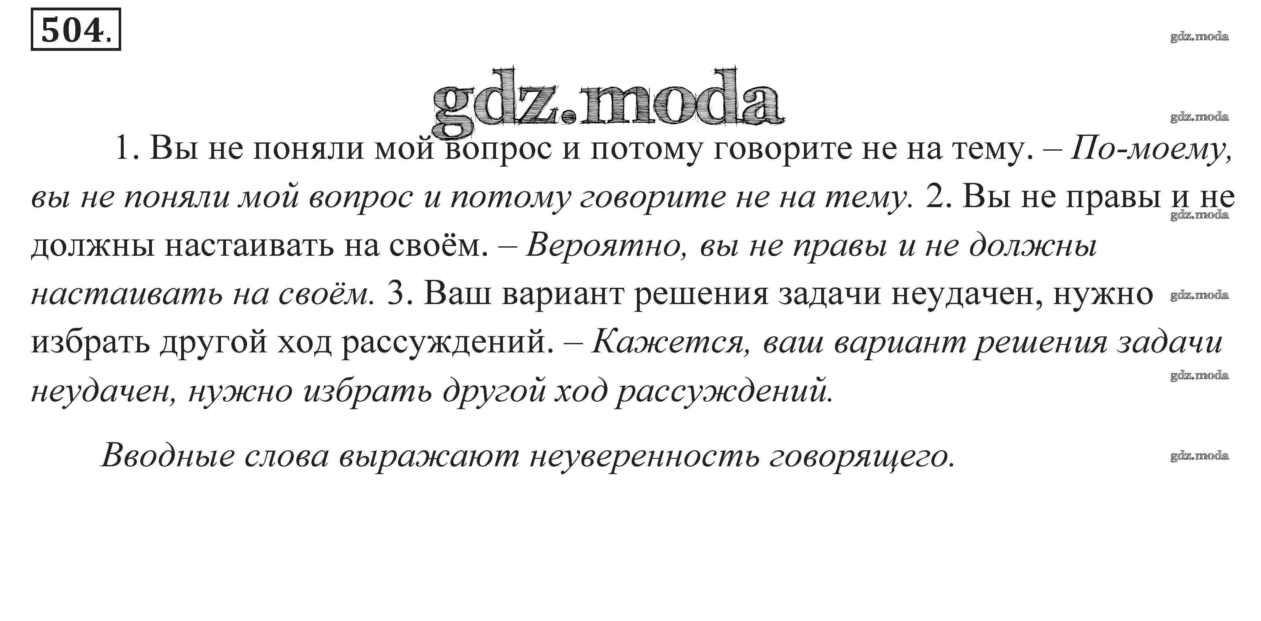 ГДЗ решение к заданию № 504 Русский язык. Практика 7 класс Пименова С.Н. Дрофа 2016 ФГОС бесплатно на гдз.мода!