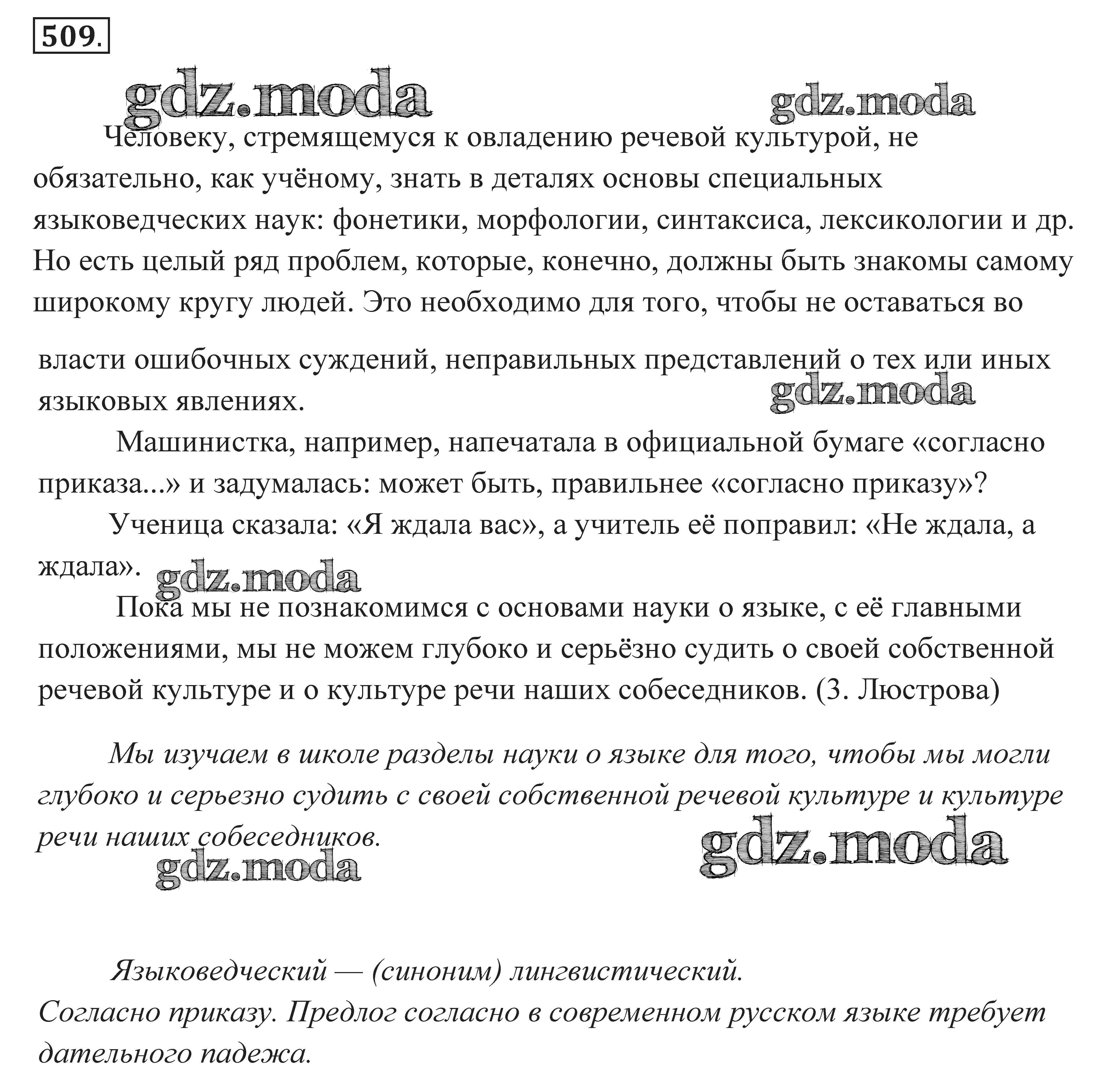 ОТВЕТ на задание № 509 Практика по Русскому языку 7 класс Пименова