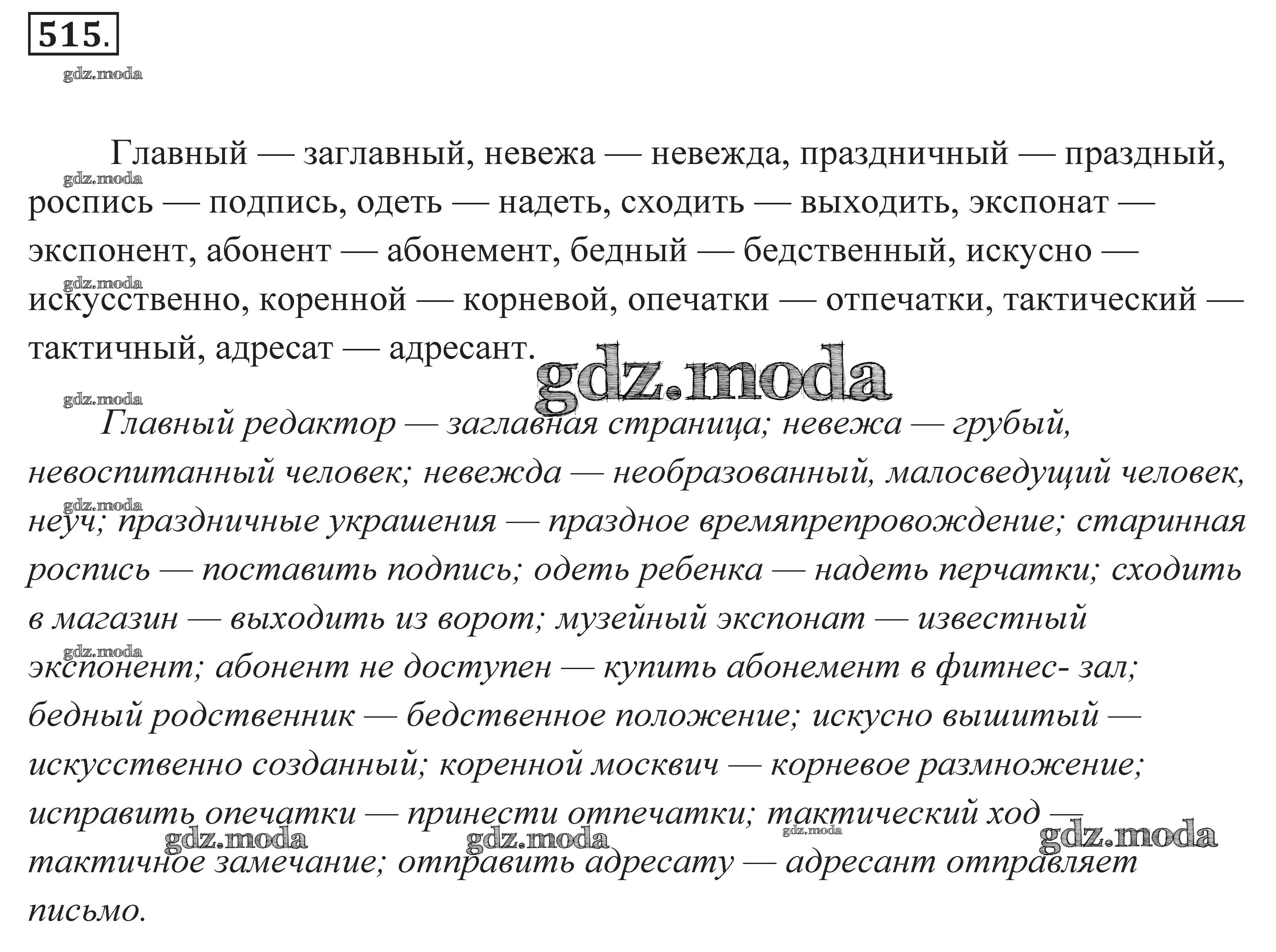ГДЗ решение к заданию № 515 Русский язык. Практика 7 класс Пименова С.Н. Дрофа 2016 ФГОС бесплатно на гдз.мода!
