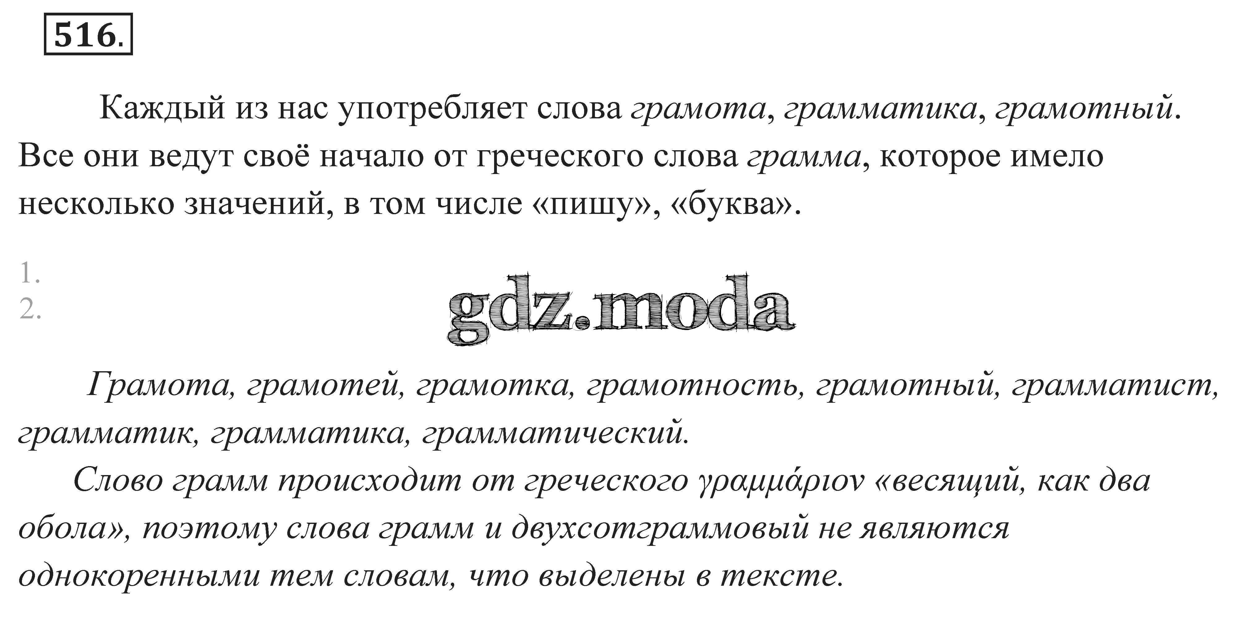 ОТВЕТ на задание № 516 Практика по Русскому языку 7 класс Пименова