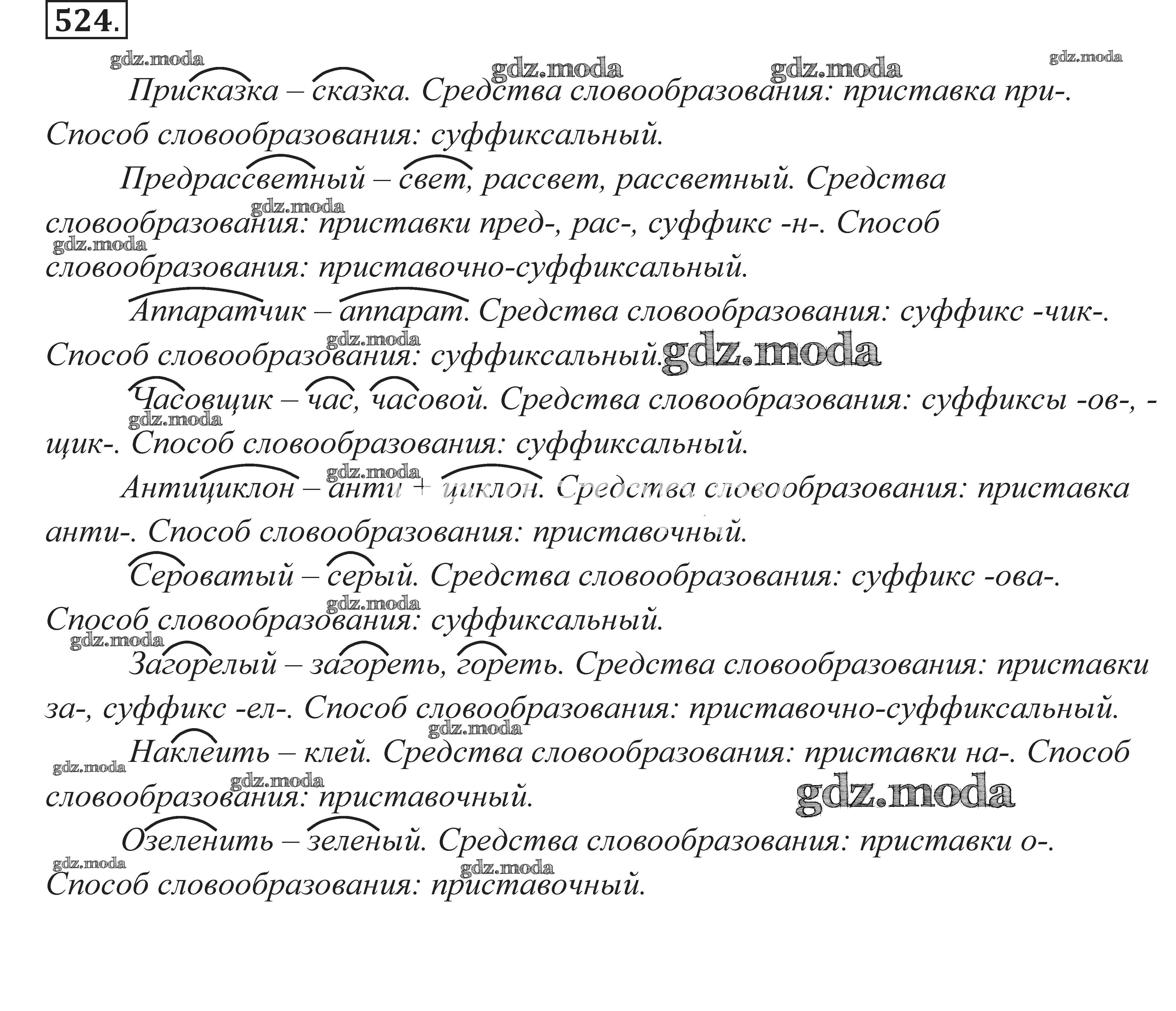 ОТВЕТ на задание № 524 Практика по Русскому языку 7 класс Пименова