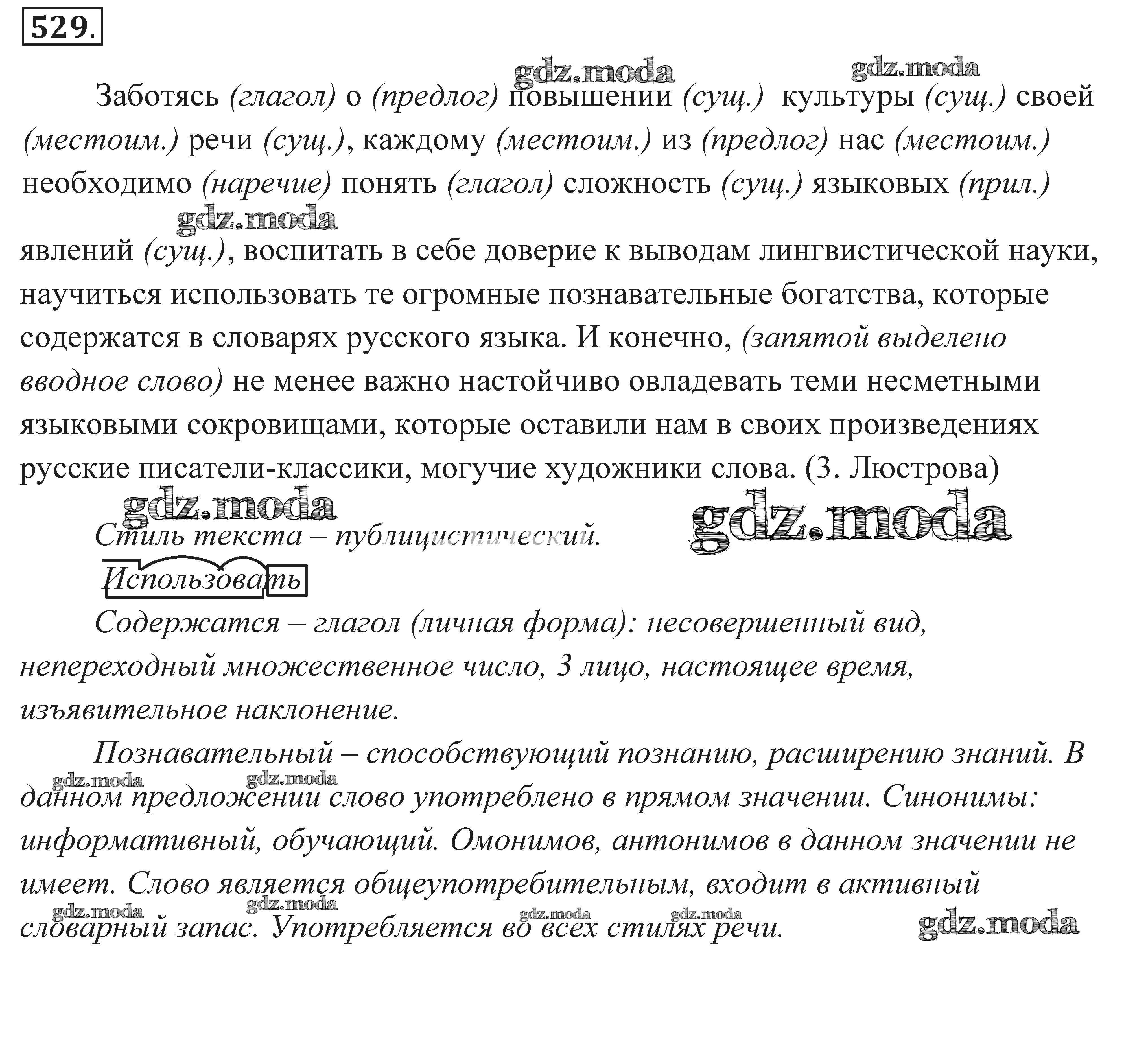 ОТВЕТ на задание № 529 Практика по Русскому языку 7 класс Пименова