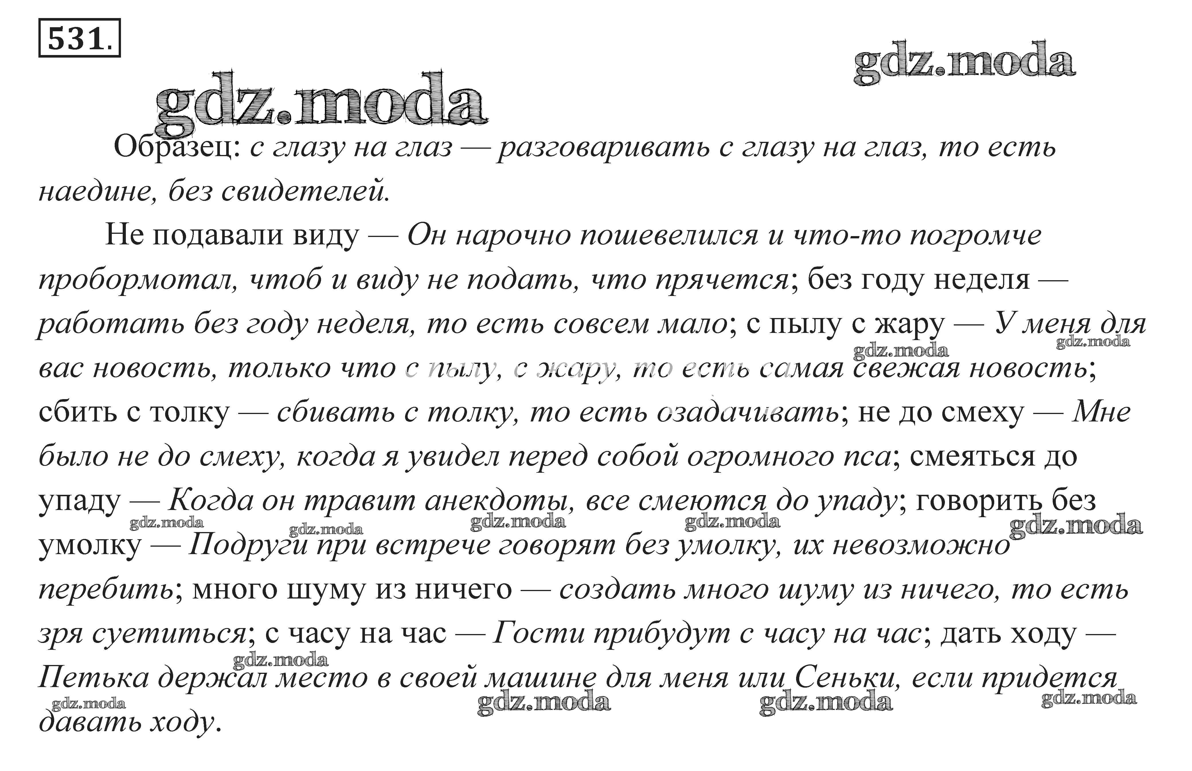 ГДЗ решение к заданию № 531 Русский язык. Практика 7 класс Пименова С.Н. Дрофа 2016 ФГОС бесплатно на гдз.мода!