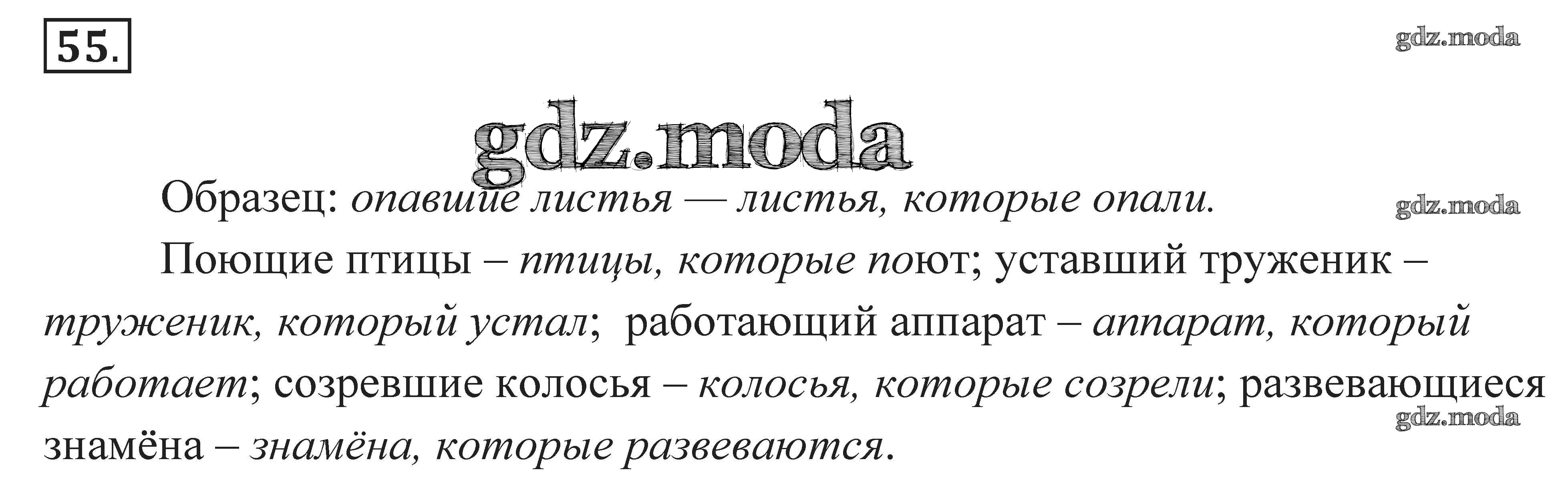 ГДЗ решение к заданию № 55 Русский язык. Практика 7 класс Пименова С.Н. Дрофа 2016 ФГОС бесплатно на гдз.мода!