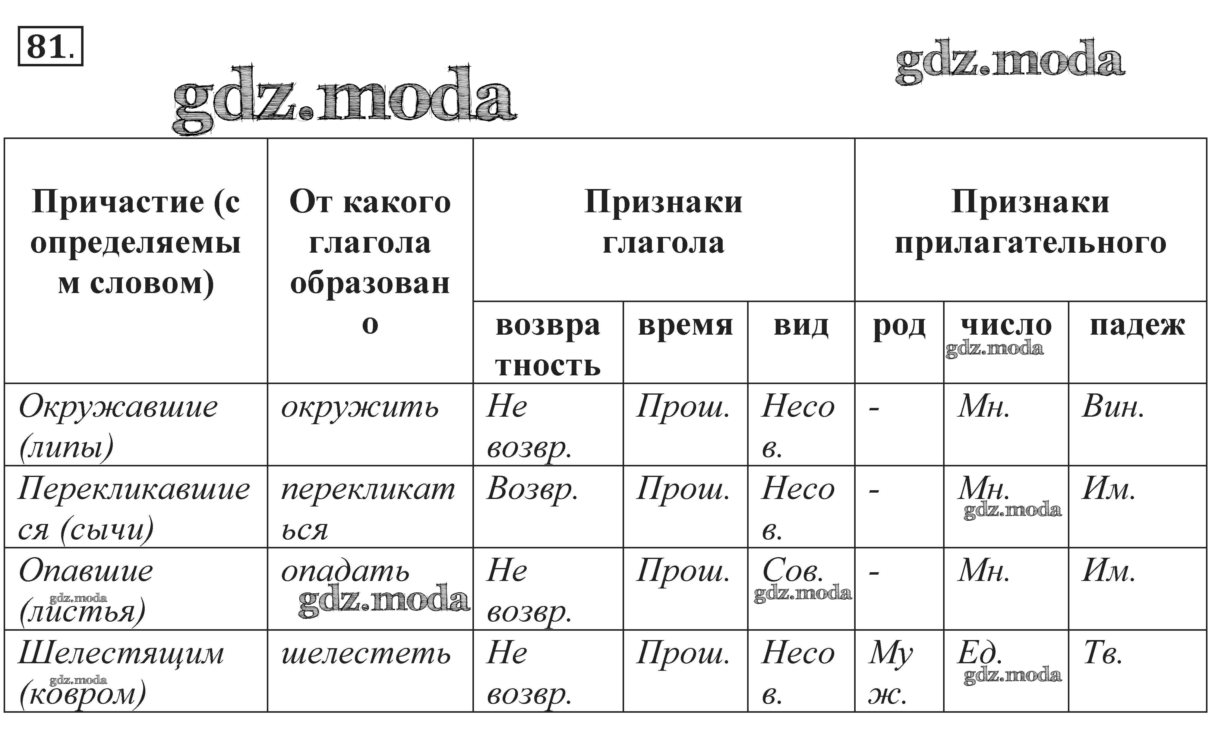 ГДЗ решение к заданию № 81 Русский язык. Практика 7 класс Пименова С.Н. Дрофа 2016 ФГОС бесплатно на гдз.мода!