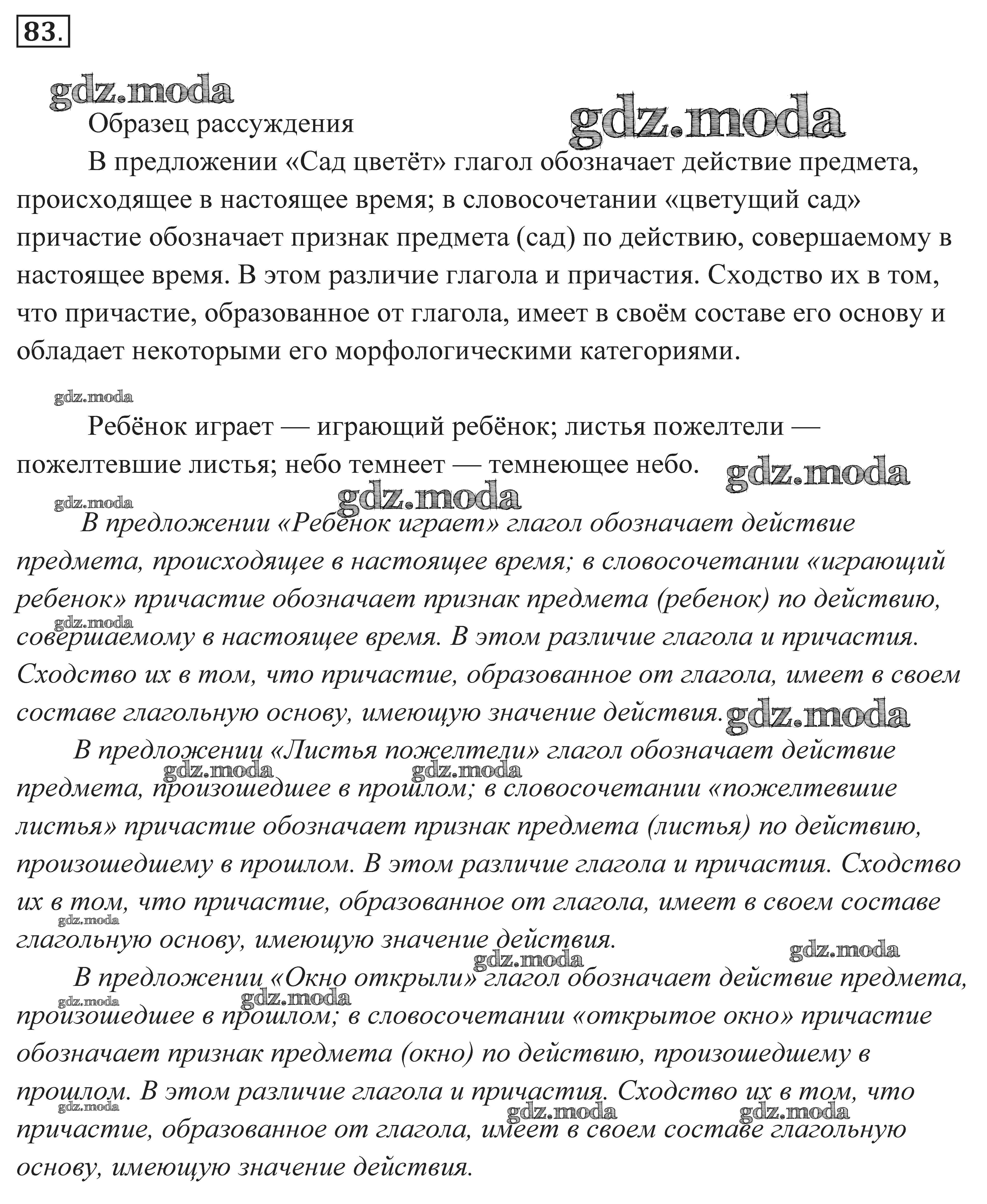 ГДЗ решение к заданию № 83 Русский язык. Практика 7 класс Пименова С.Н. Дрофа 2016 ФГОС бесплатно на гдз.мода!