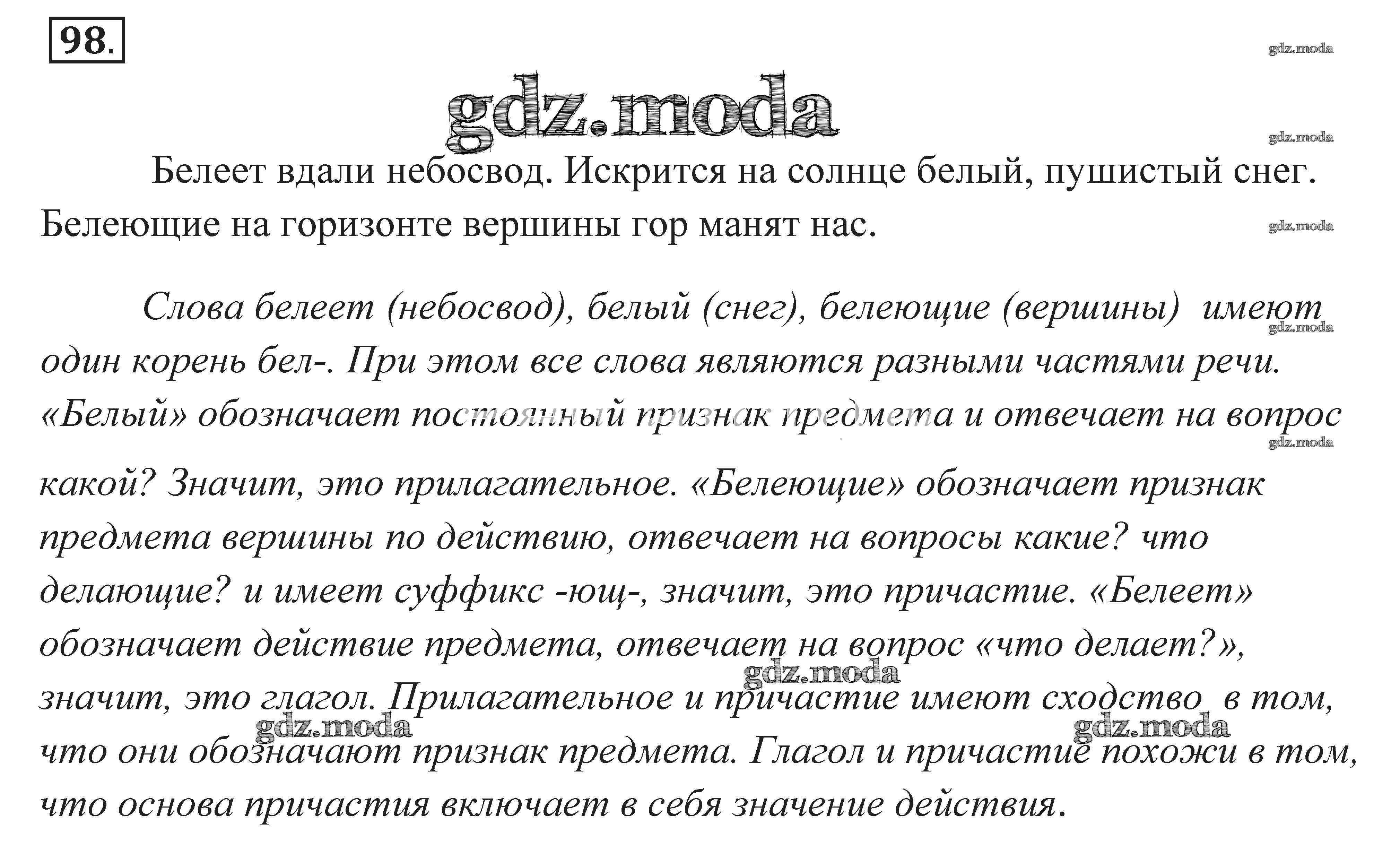 ОТВЕТ на задание № 98 Практика по Русскому языку 7 класс Пименова