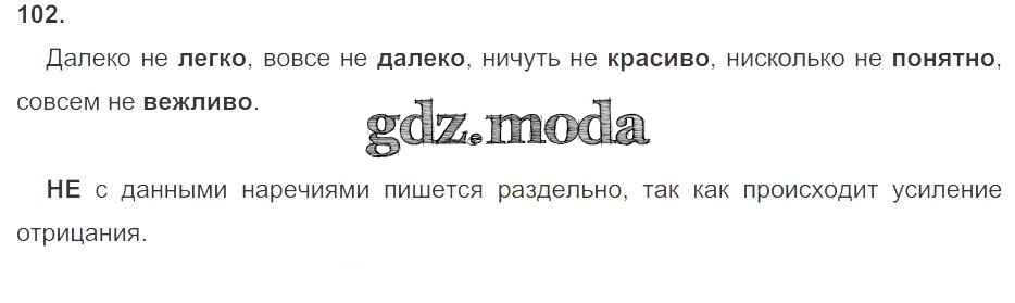 ГДЗ решение к заданию № 102 Русский язык 7 класс рабочая тетрадь Ларионова Л.Г. Дрофа 2018 ФГОС бесплатно на гдз.мода!