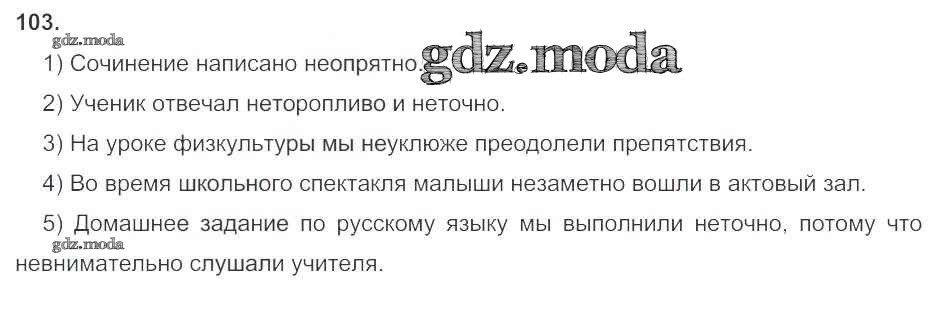 ГДЗ решение к заданию № 103 Русский язык 7 класс рабочая тетрадь Ларионова Л.Г. Дрофа 2018 ФГОС бесплатно на гдз.мода!