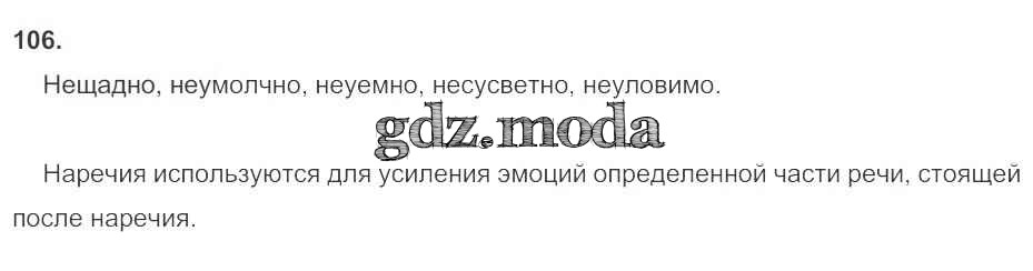ОТВЕТ на задание № 106 Рабочая тетрадь по Русскому языку 7 класс Ларионова УМК