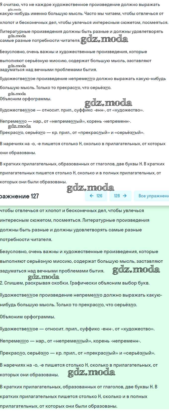 ГДЗ решение к заданию № 127 Русский язык 7 класс рабочая тетрадь Ларионова Л.Г. Дрофа 2018 ФГОС бесплатно на гдз.мода!