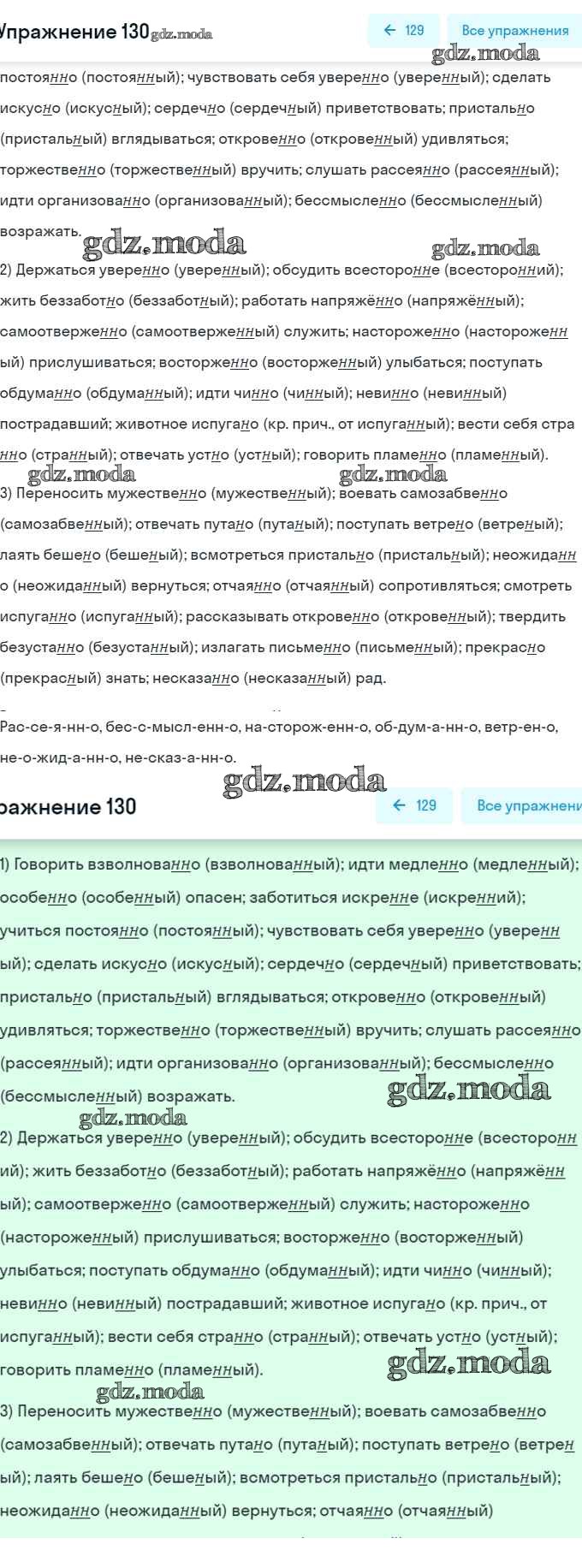 ОТВЕТ на задание № 130 Рабочая тетрадь по Русскому языку 7 класс Ларионова УМК