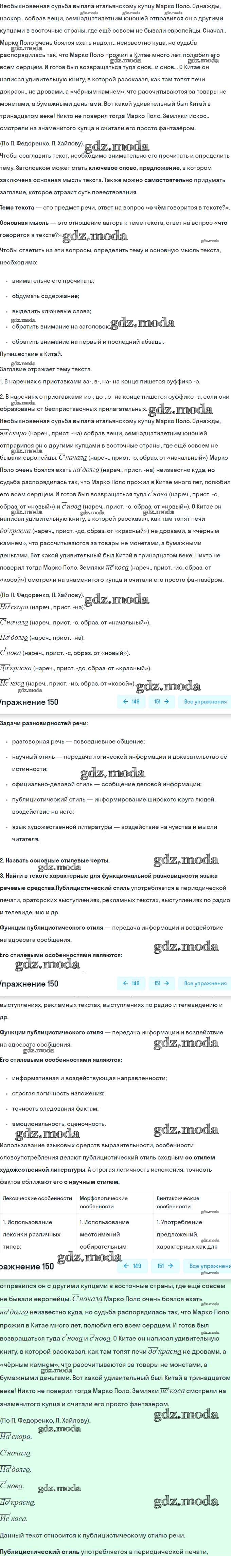 ГДЗ решение к заданию № 150 Русский язык 7 класс рабочая тетрадь Ларионова Л.Г. Дрофа 2018 ФГОС бесплатно на гдз.мода!
