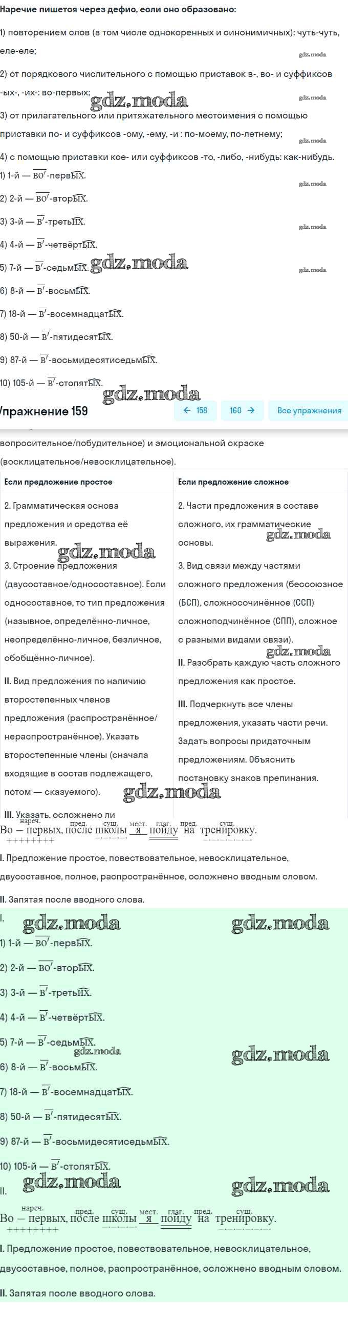 ГДЗ решение к заданию № 159 Русский язык 7 класс рабочая тетрадь Ларионова Л.Г. Дрофа 2018 ФГОС бесплатно на гдз.мода!