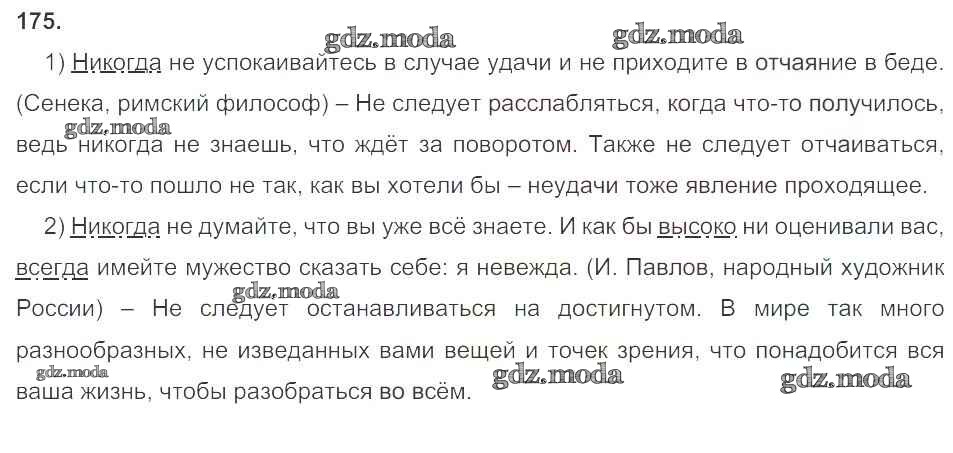 ГДЗ решение к заданию № 175 Русский язык 7 класс рабочая тетрадь Ларионова Л.Г. Дрофа 2018 ФГОС бесплатно на гдз.мода!
