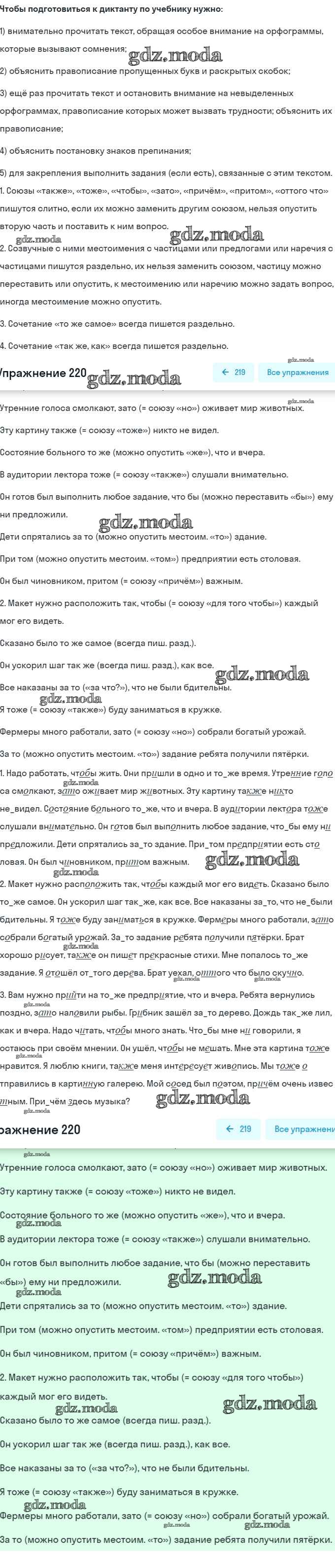 ГДЗ решение к заданию № 220 Русский язык 7 класс рабочая тетрадь Ларионова Л.Г. Дрофа 2018 ФГОС бесплатно на гдз.мода!