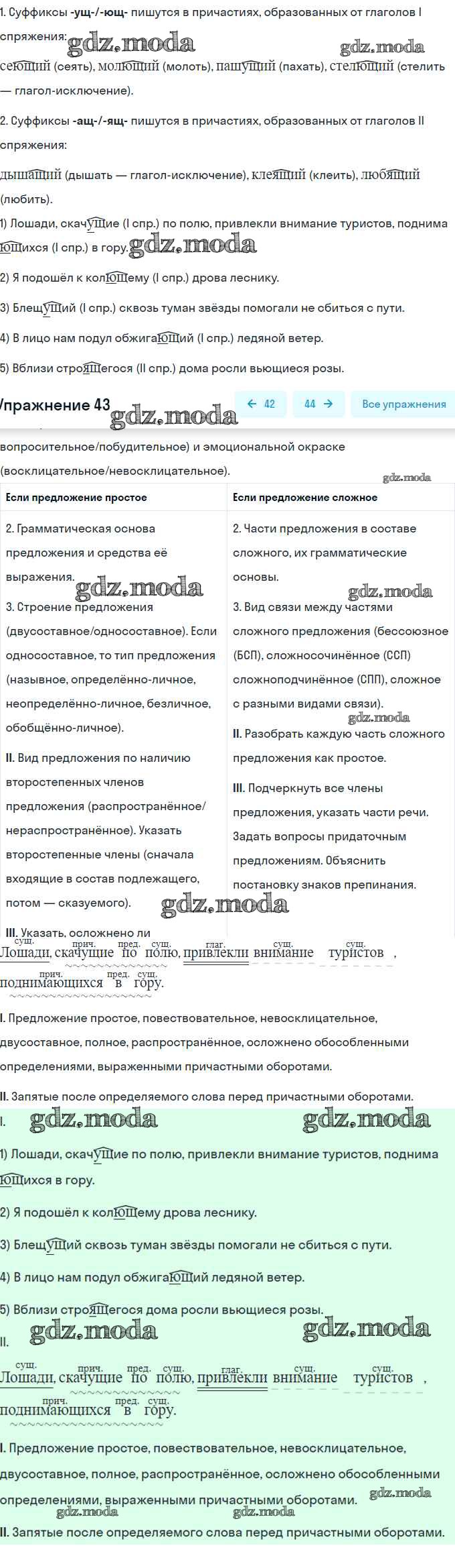 ГДЗ решение к заданию № 43 Русский язык 7 класс рабочая тетрадь Ларионова Л.Г. Дрофа 2018 ФГОС бесплатно на гдз.мода!