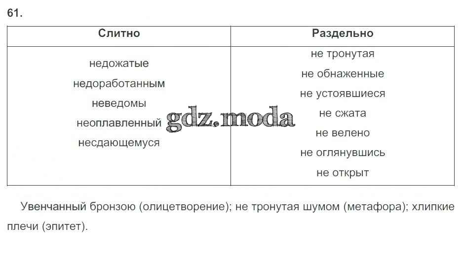 ГДЗ решение к заданию № 61 Русский язык 7 класс рабочая тетрадь Ларионова Л.Г. Дрофа 2018 ФГОС бесплатно на гдз.мода!