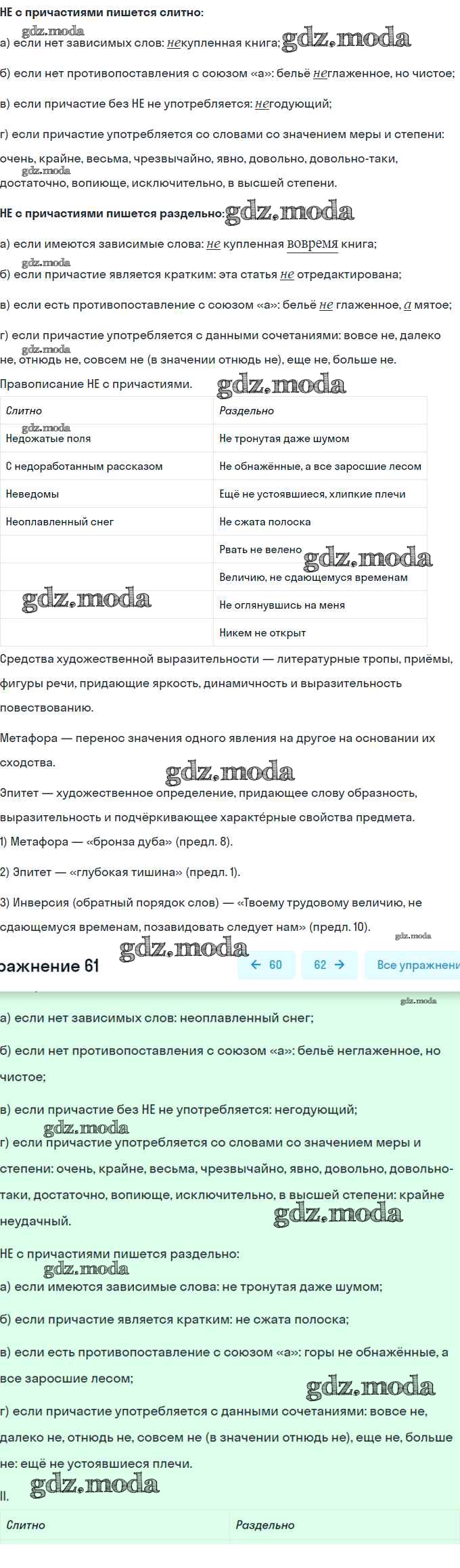 ОТВЕТ на задание № 61 Рабочая тетрадь по Русскому языку 7 класс Ларионова УМК
