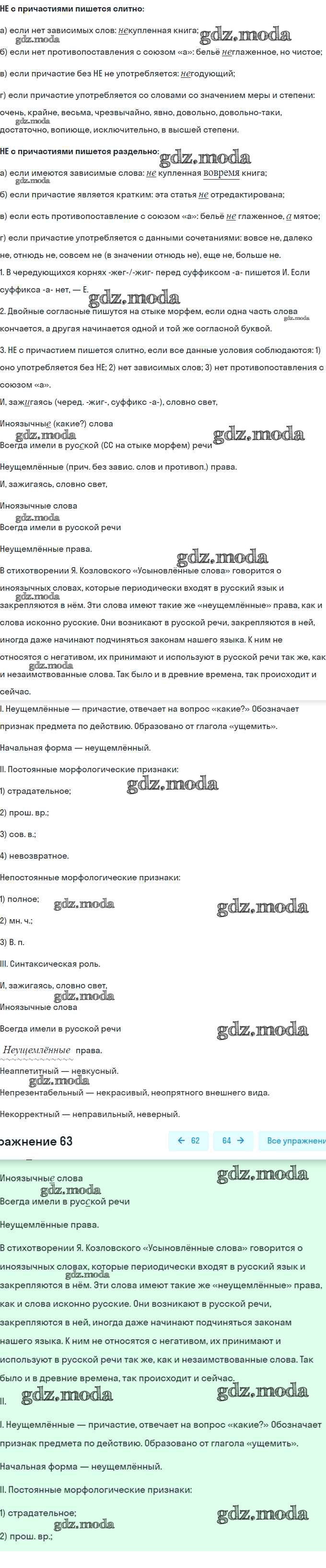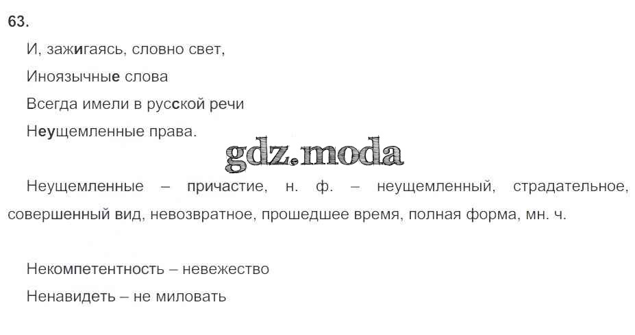 ОТВЕТ на задание № 63 Рабочая тетрадь по Русскому языку 7 класс Ларионова УМК
