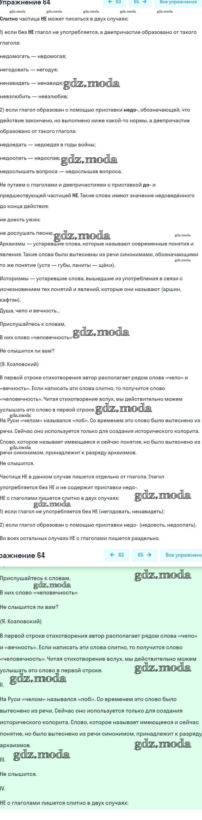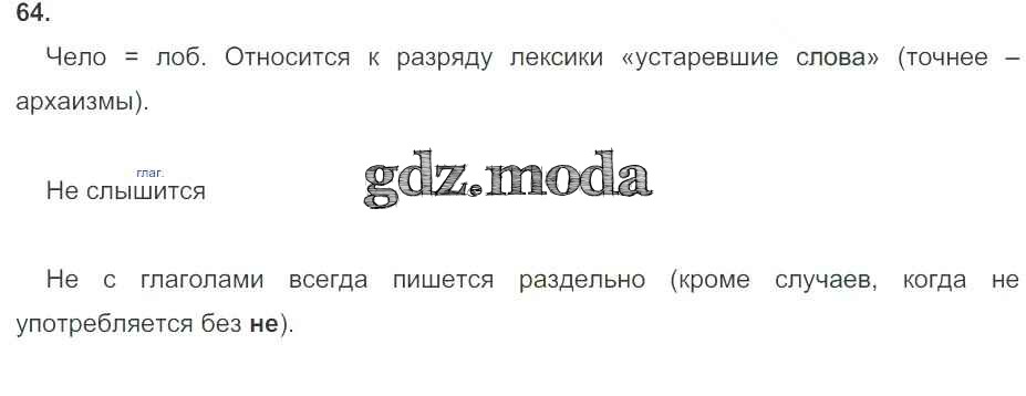 ОТВЕТ на задание № 64 Рабочая тетрадь по Русскому языку 7 класс Ларионова УМК